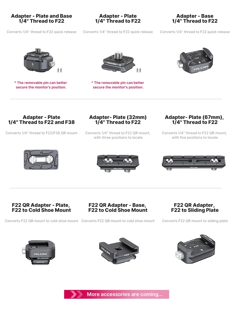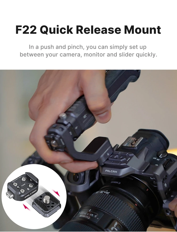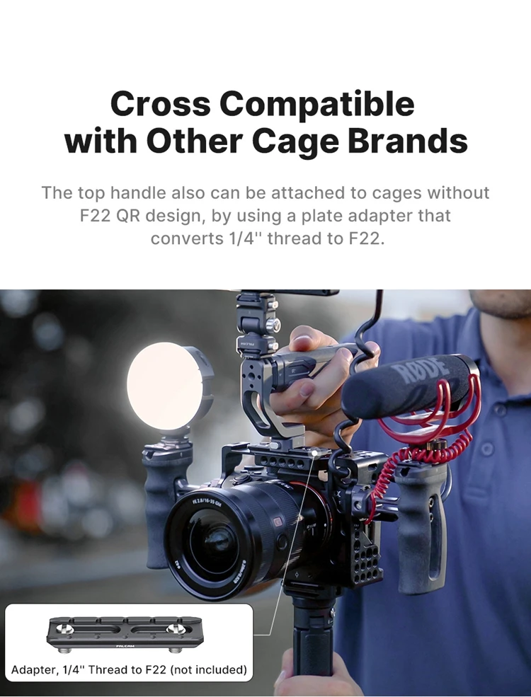 상단 손잡이는 1 / 4 "나사를 F22 로 변환하는 플레이트 어댑터를 사용하여 F22 OR 설계 없이 케이지에 부착할 수도 있습니다.