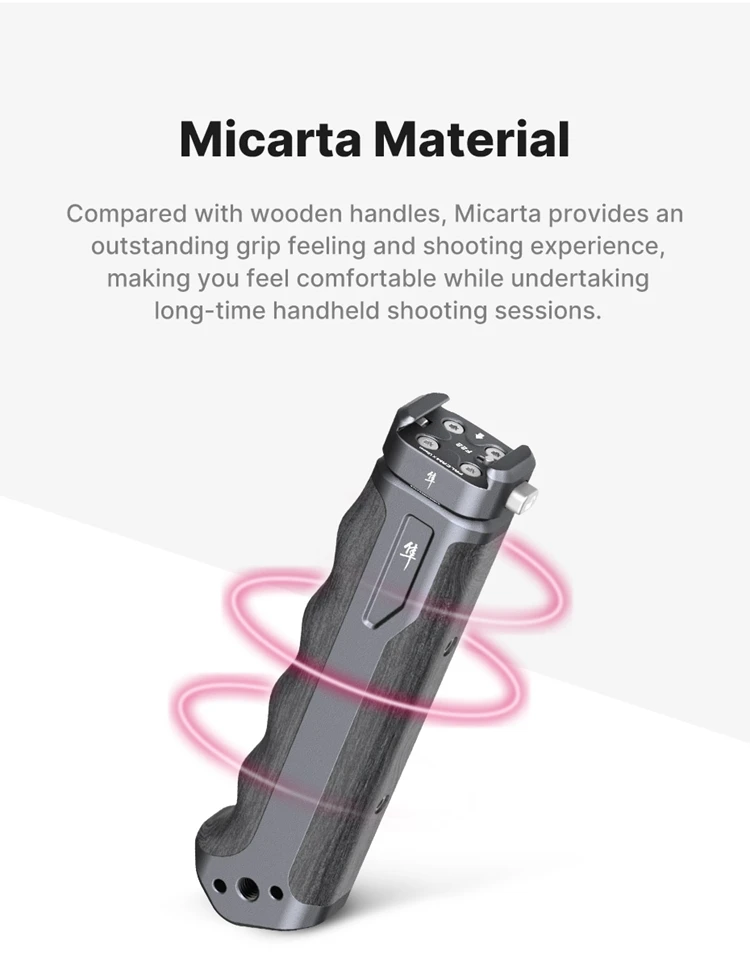나무 손잡이와 비교할 때, Micarta는 뛰어난 그립감과 촬영 경험을 제공하여 오랜 시간 핸드 헬드 촬영 세션을 수행하면서 편안함을 느끼게합니다.