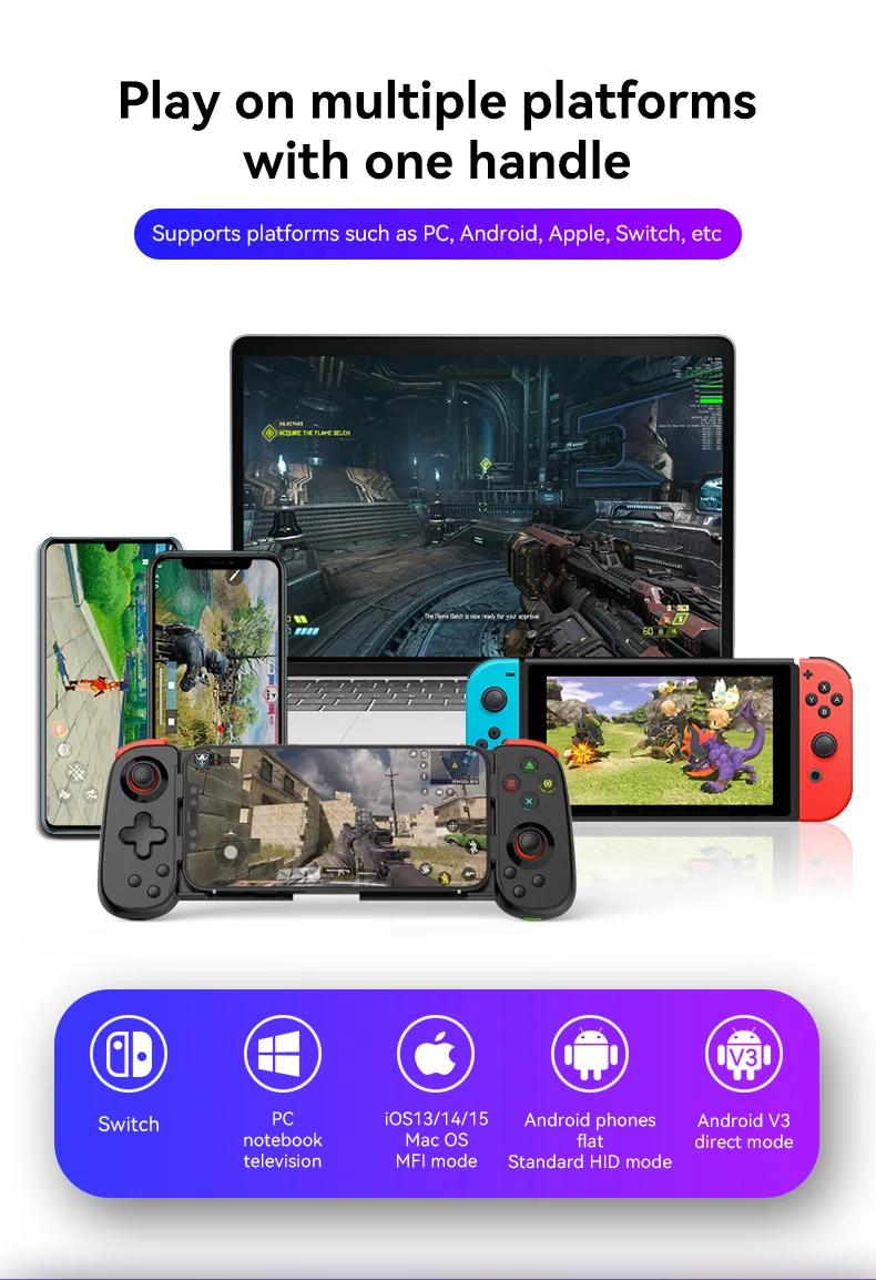 손에 하나의 핸들, 모든 플랫폼 재생: 아이폰 안드로이드/PS4/PS5/스위치 PC 기능과 호환;