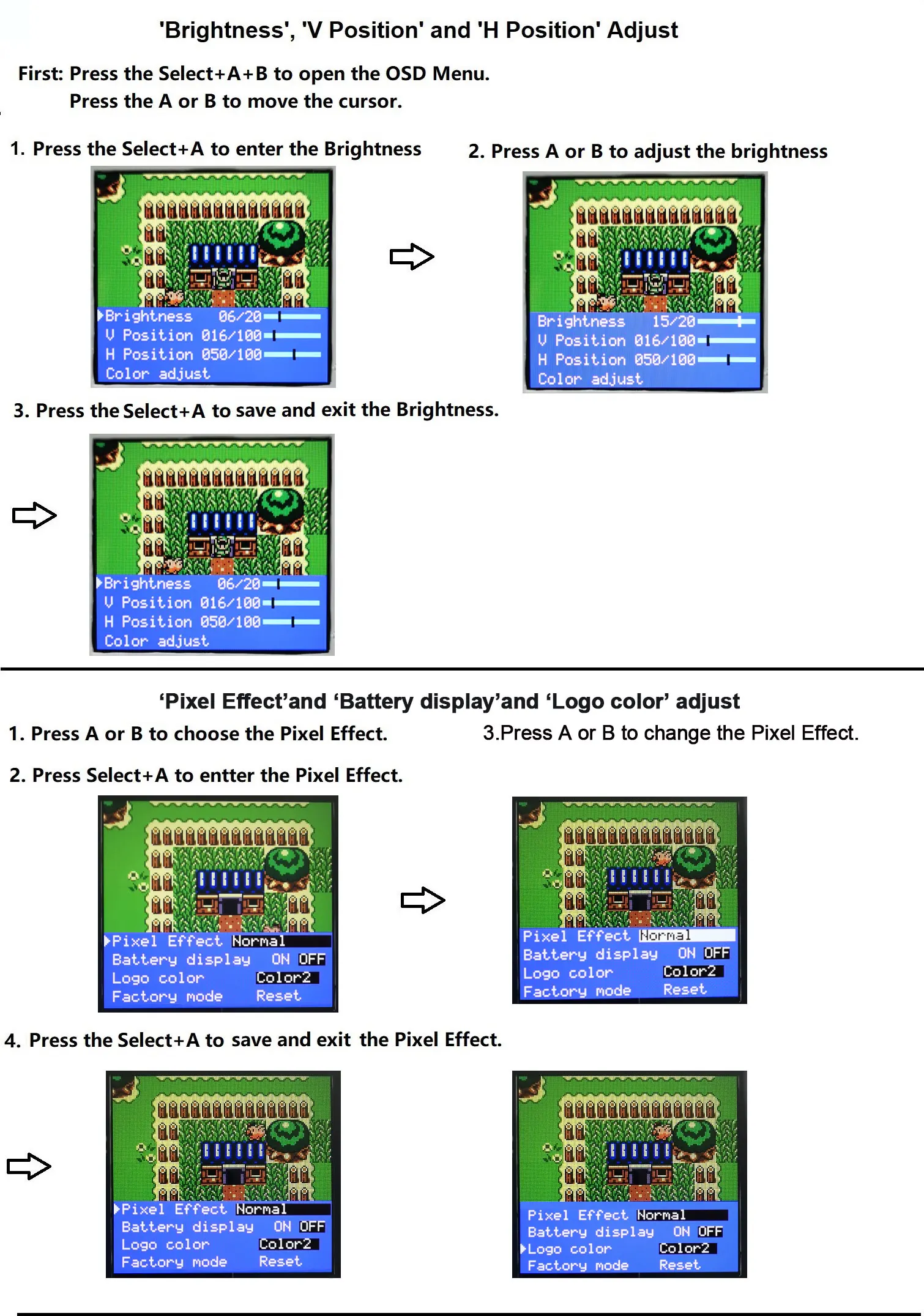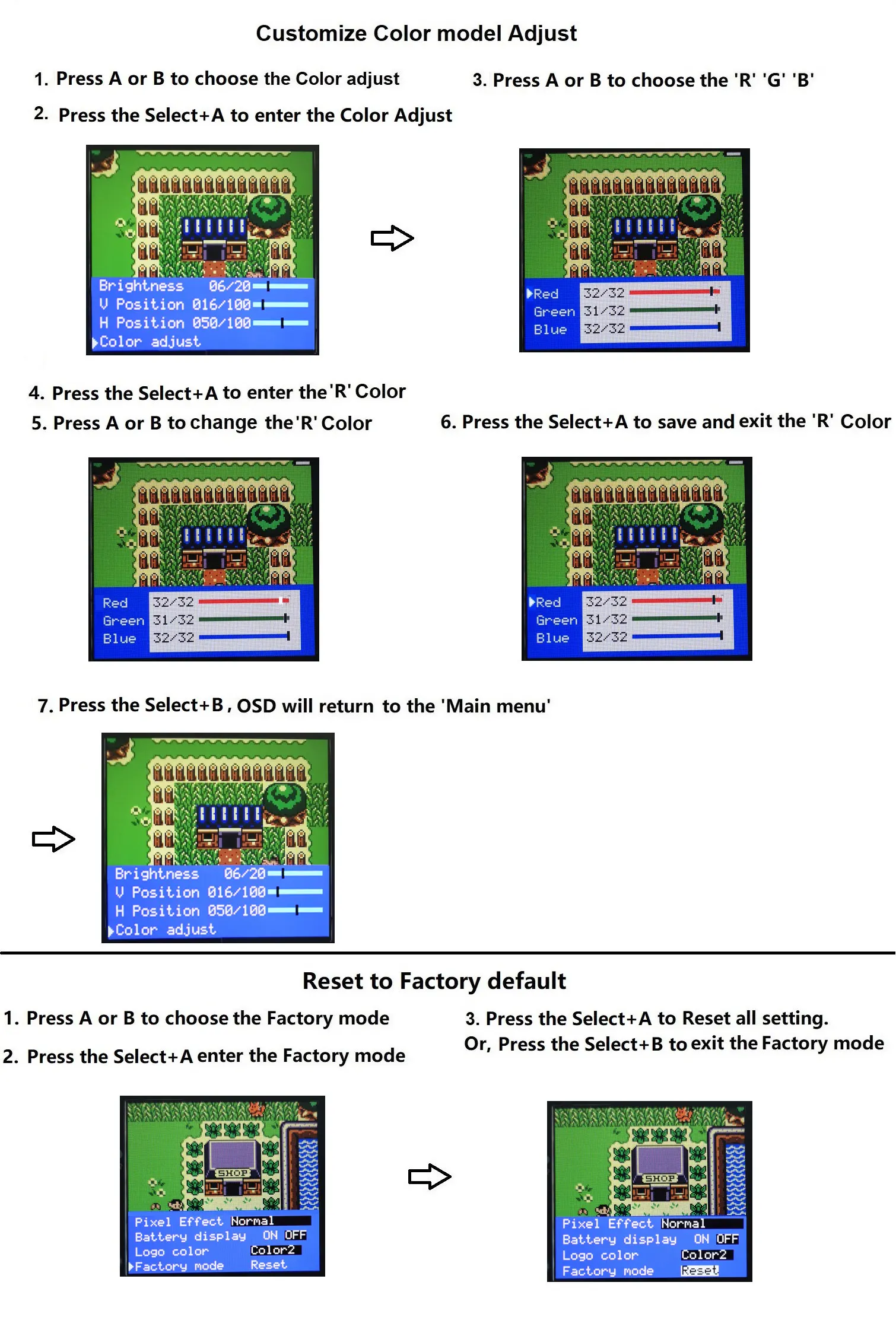 내장 GB 흑백 컬러 모드로 GB DMG 콘솔처럼 재생할 수 있습니다.