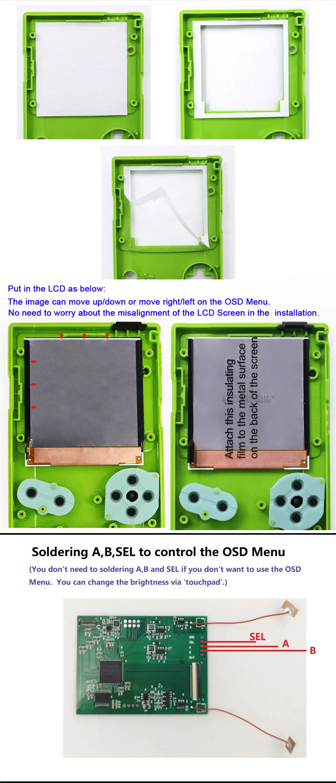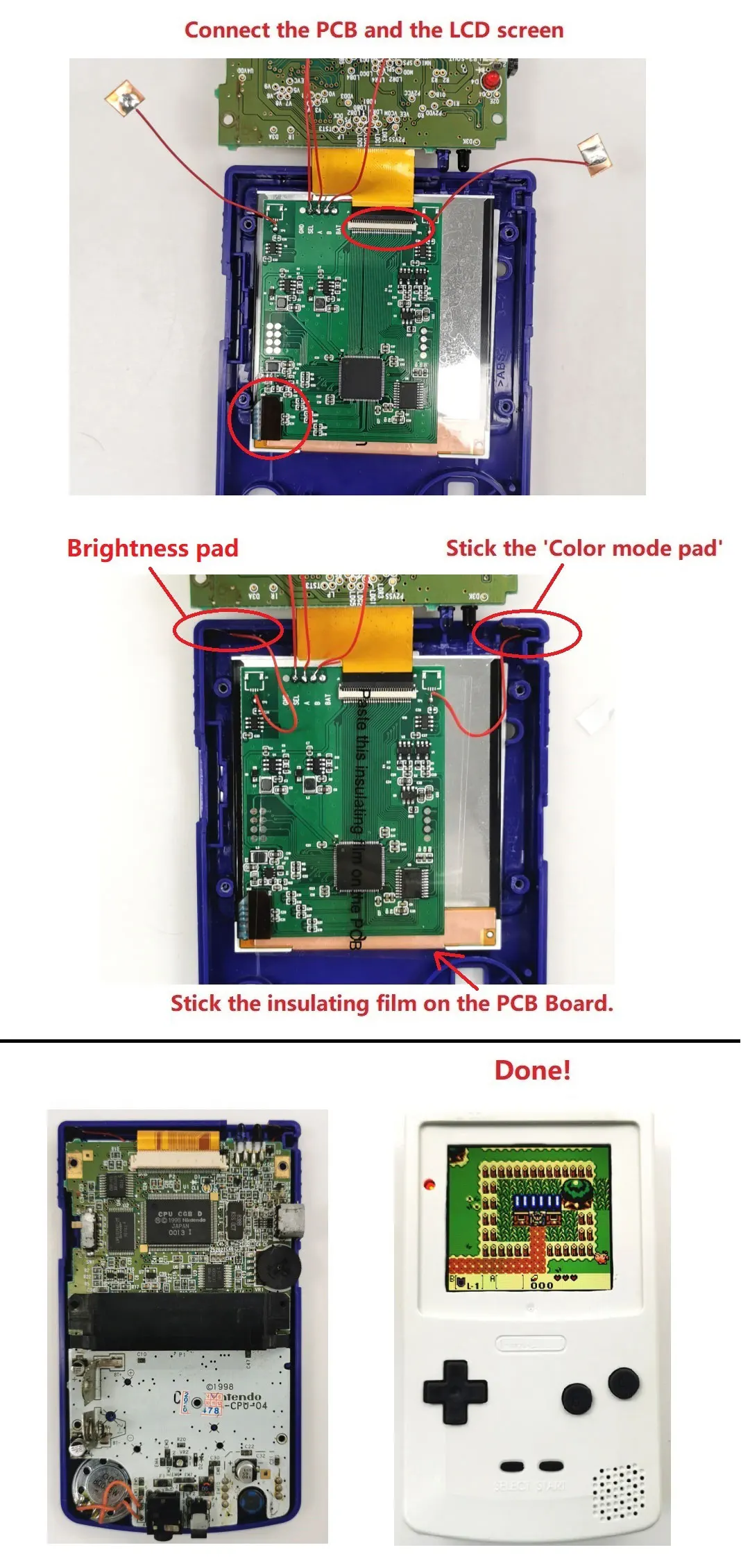 GBC 맞춤형 유리 스크린 렌즈가있는 1 * LCD 키트