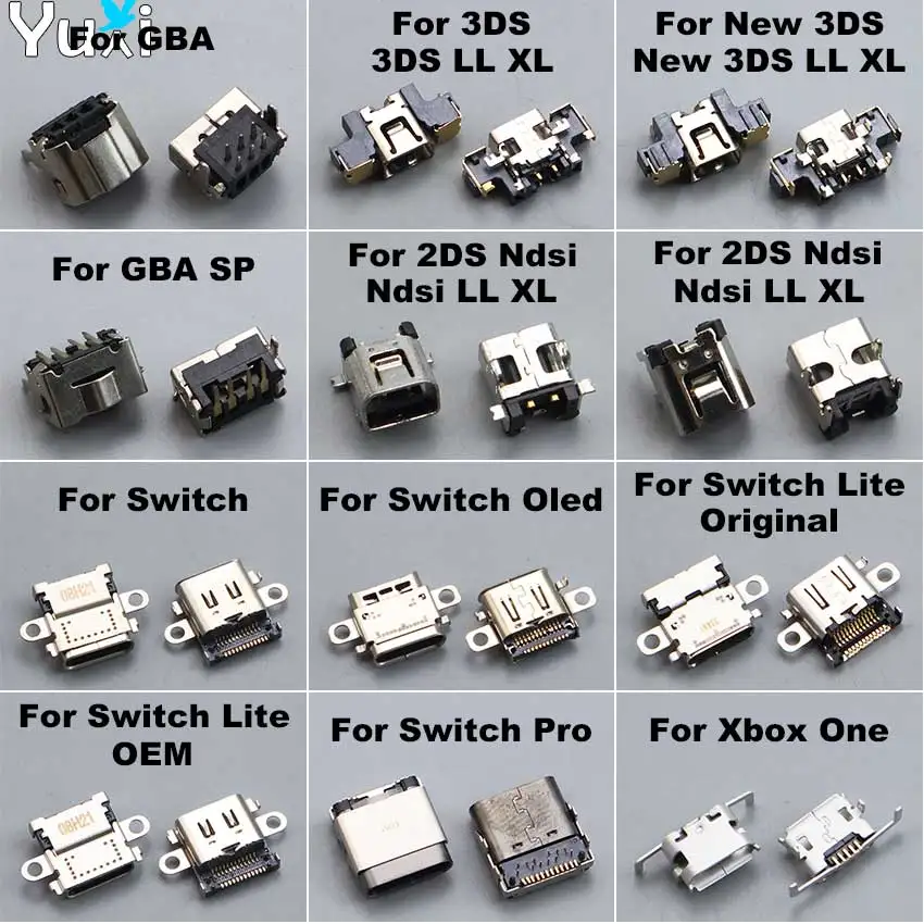 YuXi 스위치 NS 프로 라이트용 USB C타입 충전 포트 커넥터 Oled 전원 잭 소켓 2DS 3DS NDSi LL XL GBA SP