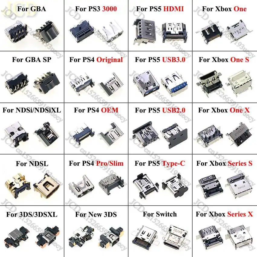 HDMI 호환 충전 포트 P5 스위치용 소켓 커넥터 PS4 프로 Xbox 원 시리즈 S X USB2.0 3.0 C타입 전원 잭 1