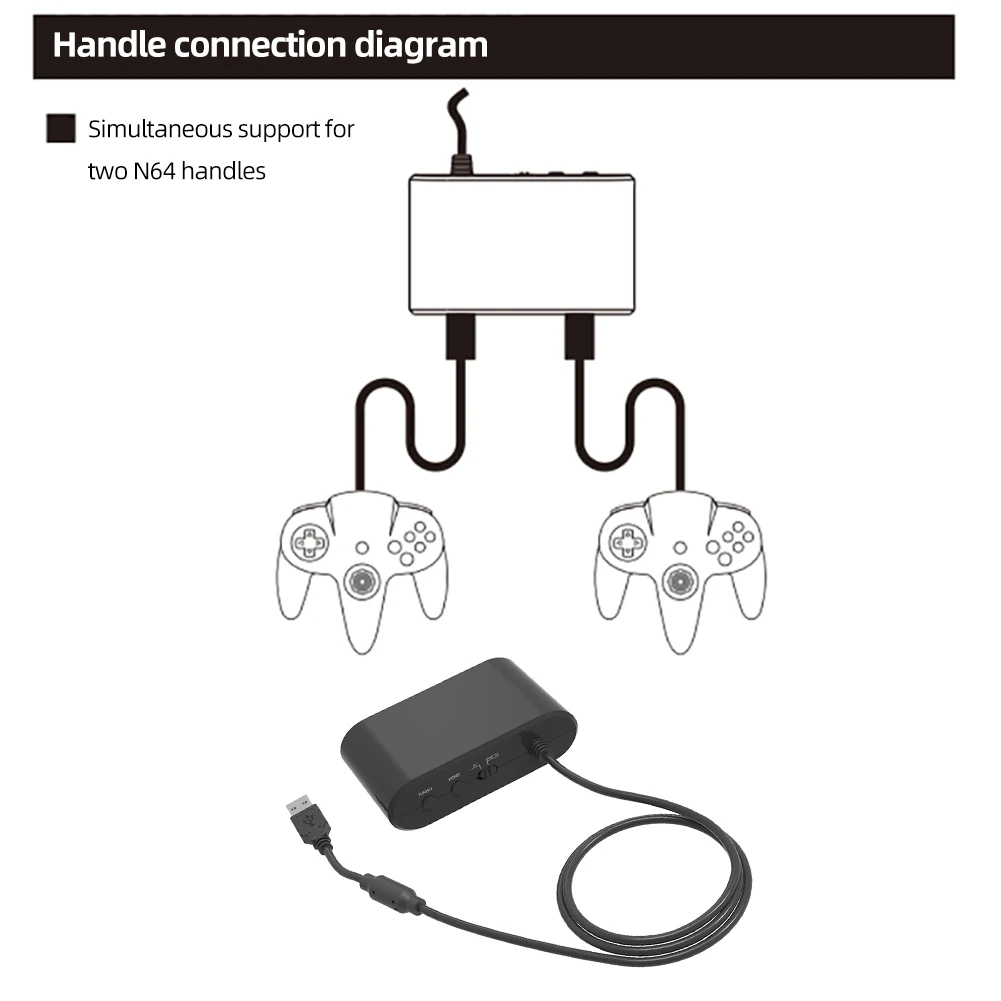1. 듀얼 N64 컨트롤러 지원:Nintendo Switch 또는 PC Windows 시스템에서 두 개의 N64 컨트롤러를 동시에 연결하고 사용하십시오. 제한없이 친구 및 가족과 함께 멀티 플레이어 게임을 즐기십시오. 몰입 형 게임 경험을 위해 두 컨트롤러를 쉽게 연결하십시오.