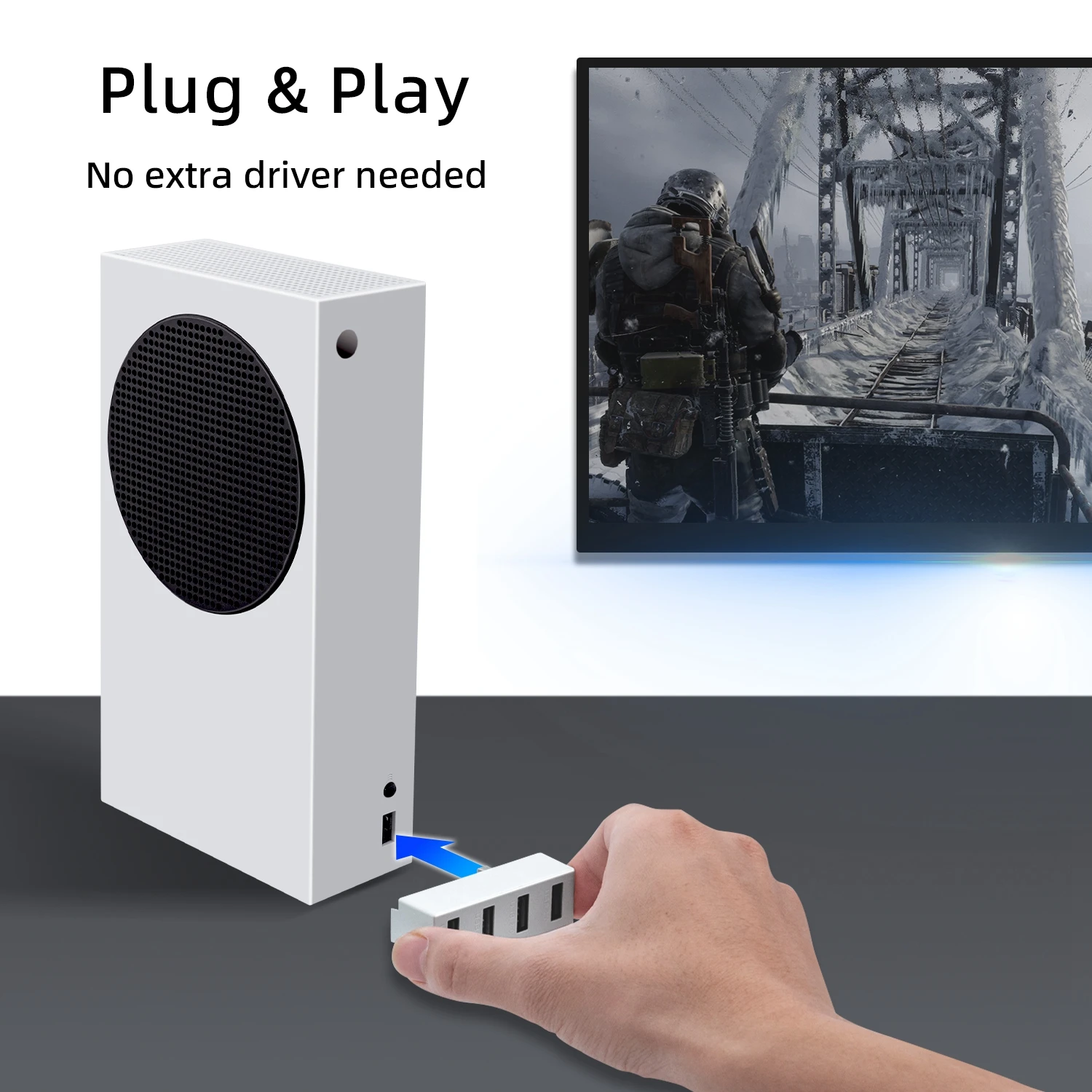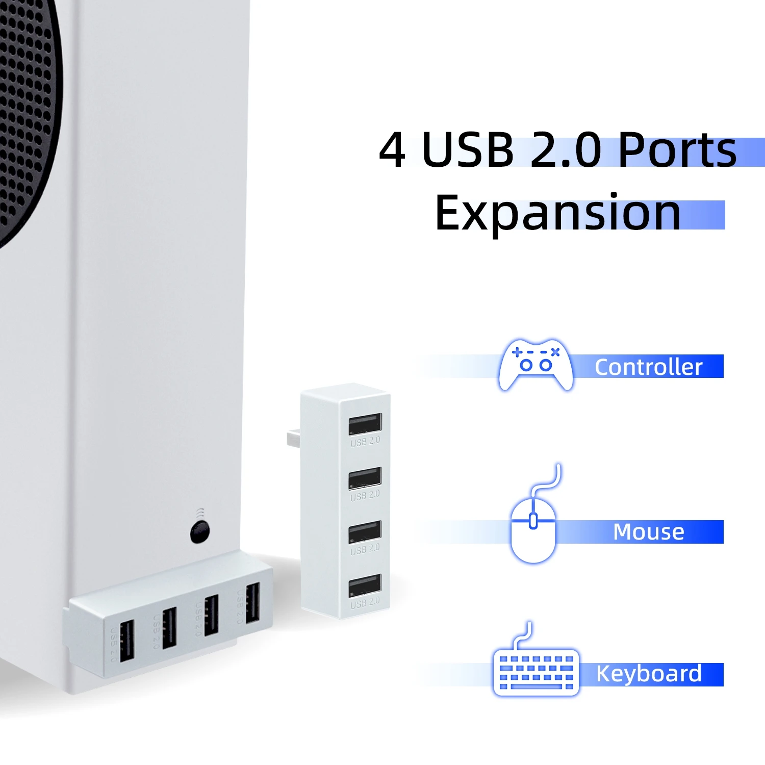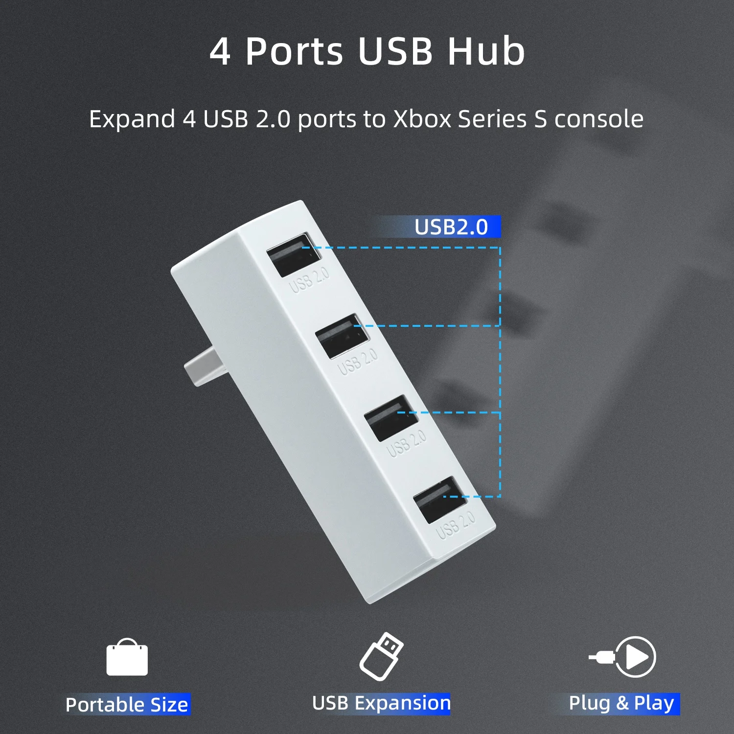 -이 1-to4 USB2.0 허브는 Xbox 시리즈 S 콘솔 용으로 특별히 설계되어 게임 콘솔 포트를 확장하고 더 많은 게임 주변 장치를 연결합니다.