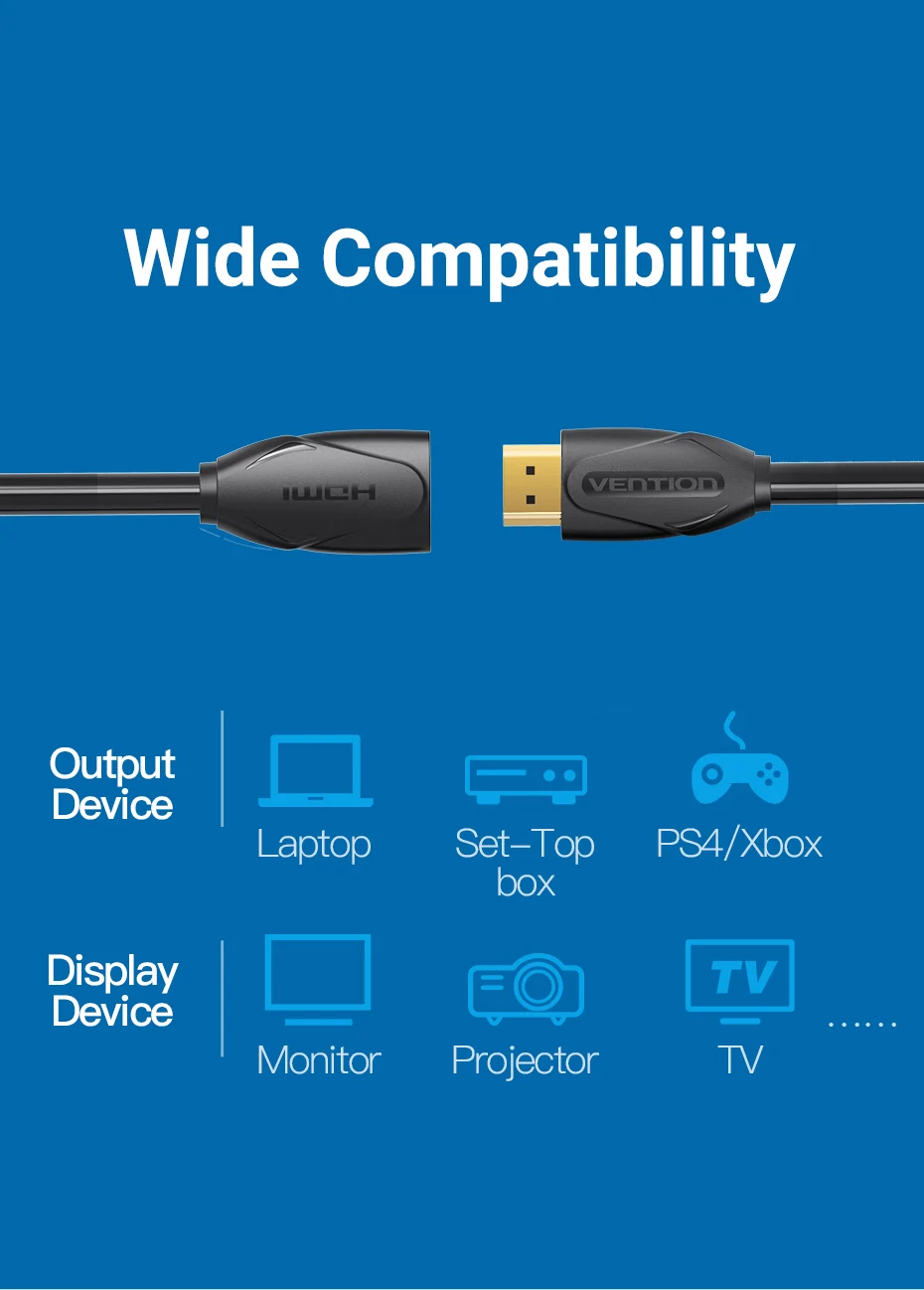 Vention-HDMI 익스텐더 4K HDMI 연장 케이블 HDMI 2.0 Male to Female 케이블 HDTV 닌텐도 스위치 PS43 HDM
