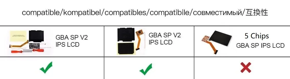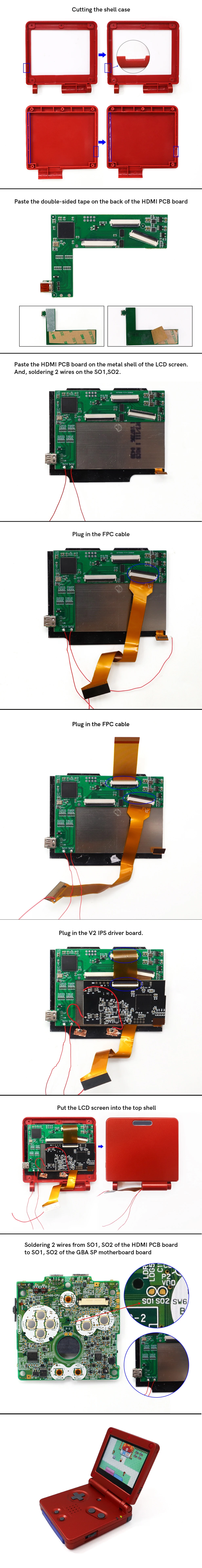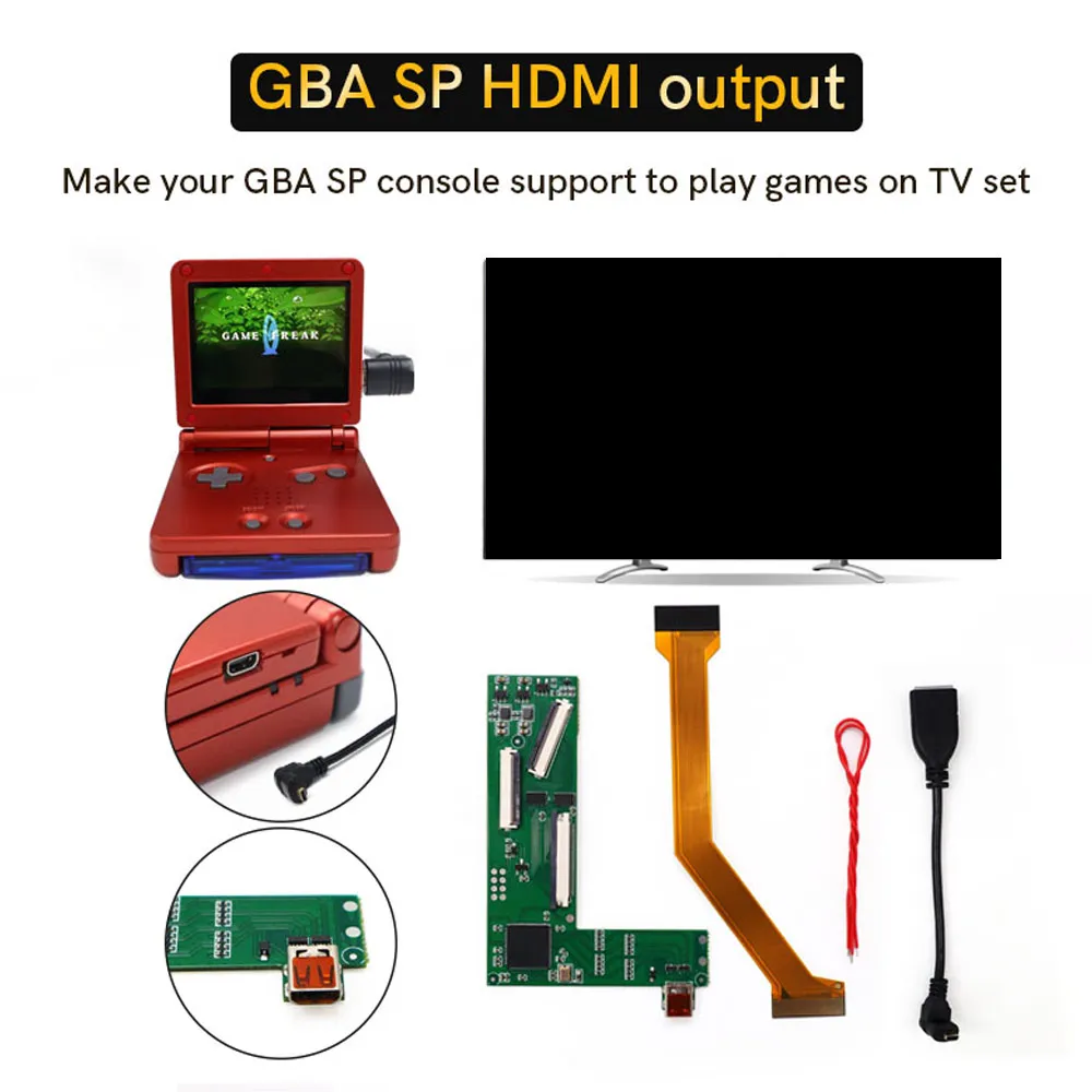 GBA SP V2 백라이트 LCD 및 GBA SP V3 PCB 버전 백라이트 LCD와 전기적으로 호환되는 GBA SP 용 내부 HDMI 출력 모드입니다. 사진을 벨로우로 두 번 확인하십시오.