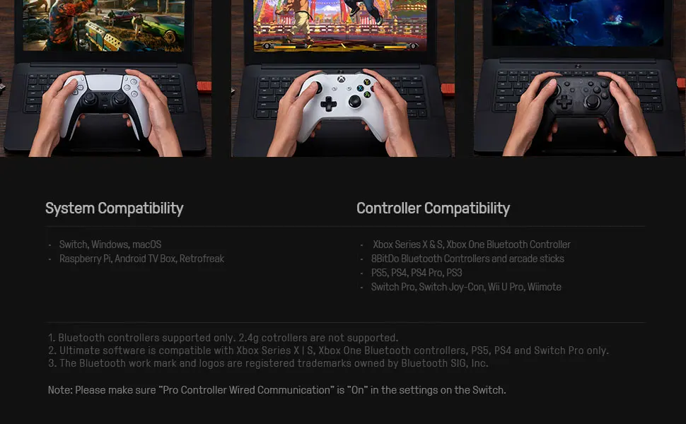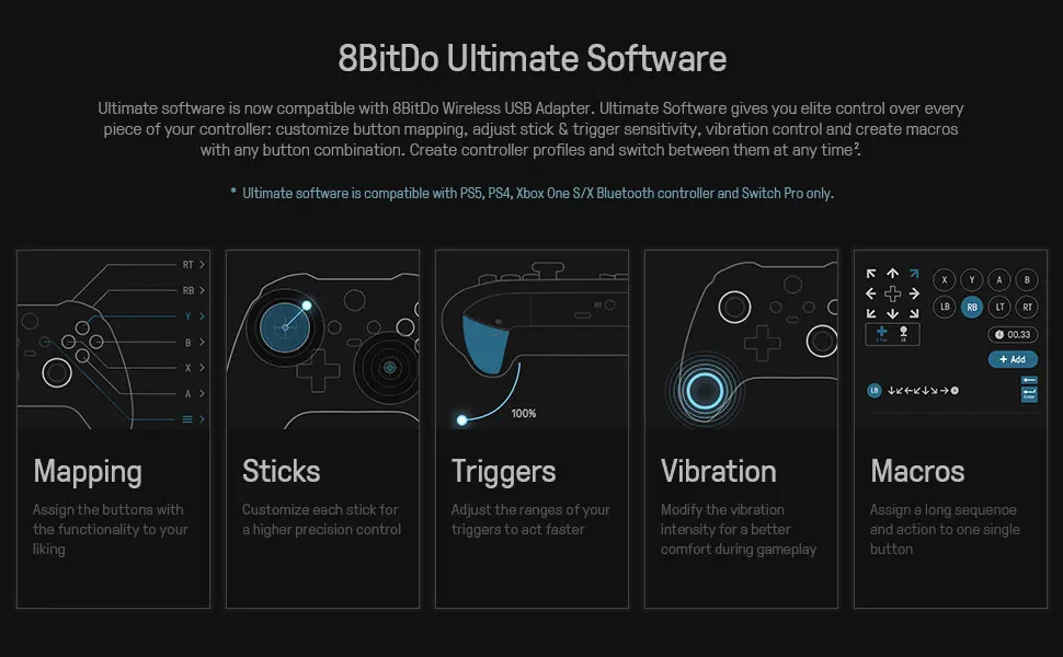 * Xbox 시리즈, Xbox Bluetooth 핸들, PS5 핸들, PS4 핸들 및 스위치 Pro 지원 "8 비트 홀 엘리트 소프트웨어".