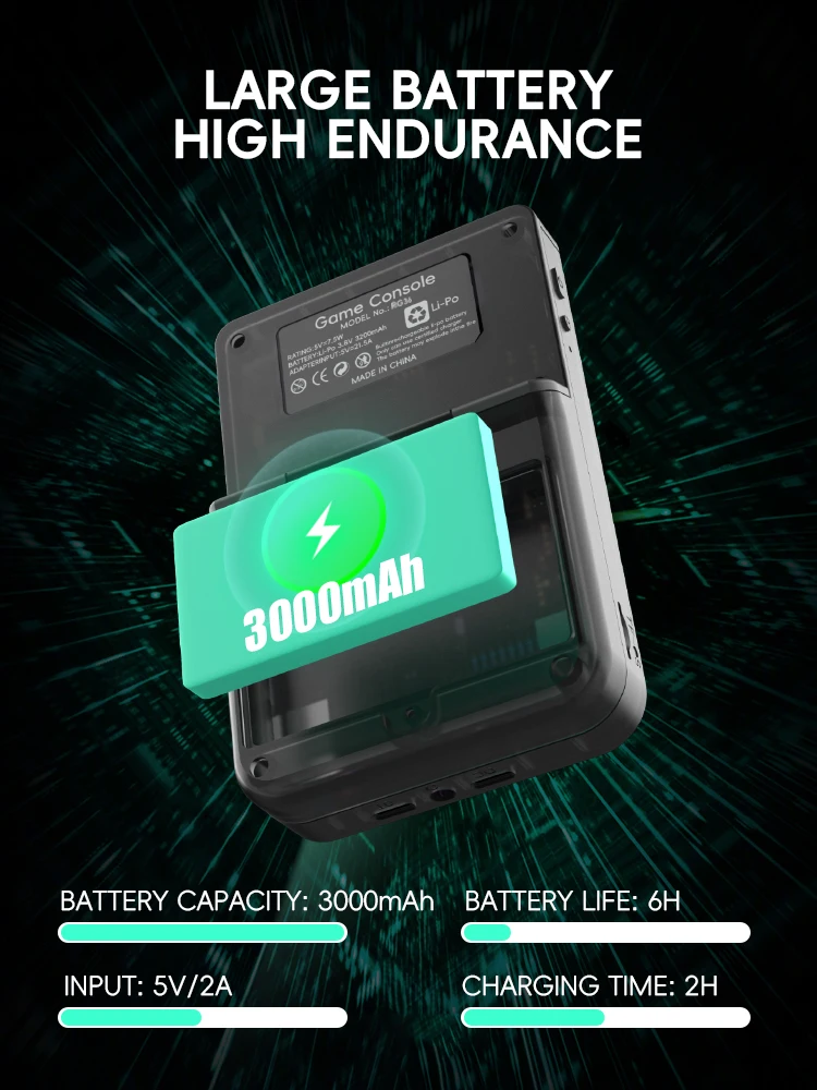 강력한 3000mAh 배터리를 갖춘 RG36 은 3-5 시간의 중단없는 게임 플레이를 제공합니다. 항상 이동 중이고 긴 게임 세션을 위해 안정적인 전원이 필요한 게이머에게 이상적입니다.