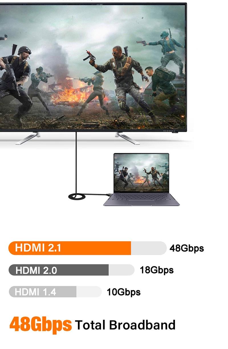 HDMI2.0,1.4,1.2 버전 요법과 호환되는 HDMI 2.1 케이블. 이 케이블은 HDMI 2.0 또는 1.4 버전의 장치에서 사용할 수 있으므로 다른 버전 케이블을 반복적으로 구입할 필요가 없습니다.