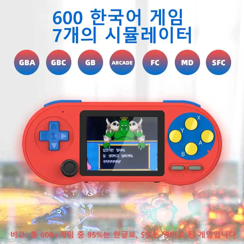 이 고유한 휴대용 콘솔은 SFC, FC, GBA, GB, GBC, MAME 및 Sega 에뮬레이션을 지원합니다. 600 게임으로 한국어로 95% 영어, 일본어 등으로 5%. 다양한 타이틀로 복고풍 게임 재미의 세계로 빠져보세요. 이동 중에도 게임을 즐기거나 더 큰 경험을 위해 TV에 연결하십시오.