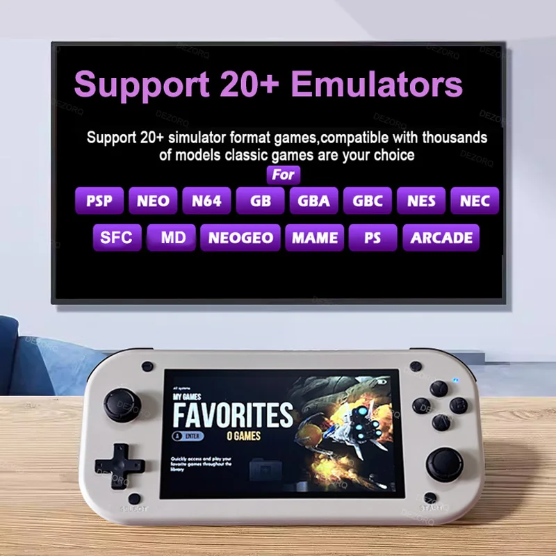 여러 에뮬레이터 및 광범위한 게임 범위: 여러 에뮬레이터와 20,000 개가 넘는 레트로 비디오 게임을 지원하는 휴대용 게임 콘솔로 무한한 게임 세계를 즐기십시오.