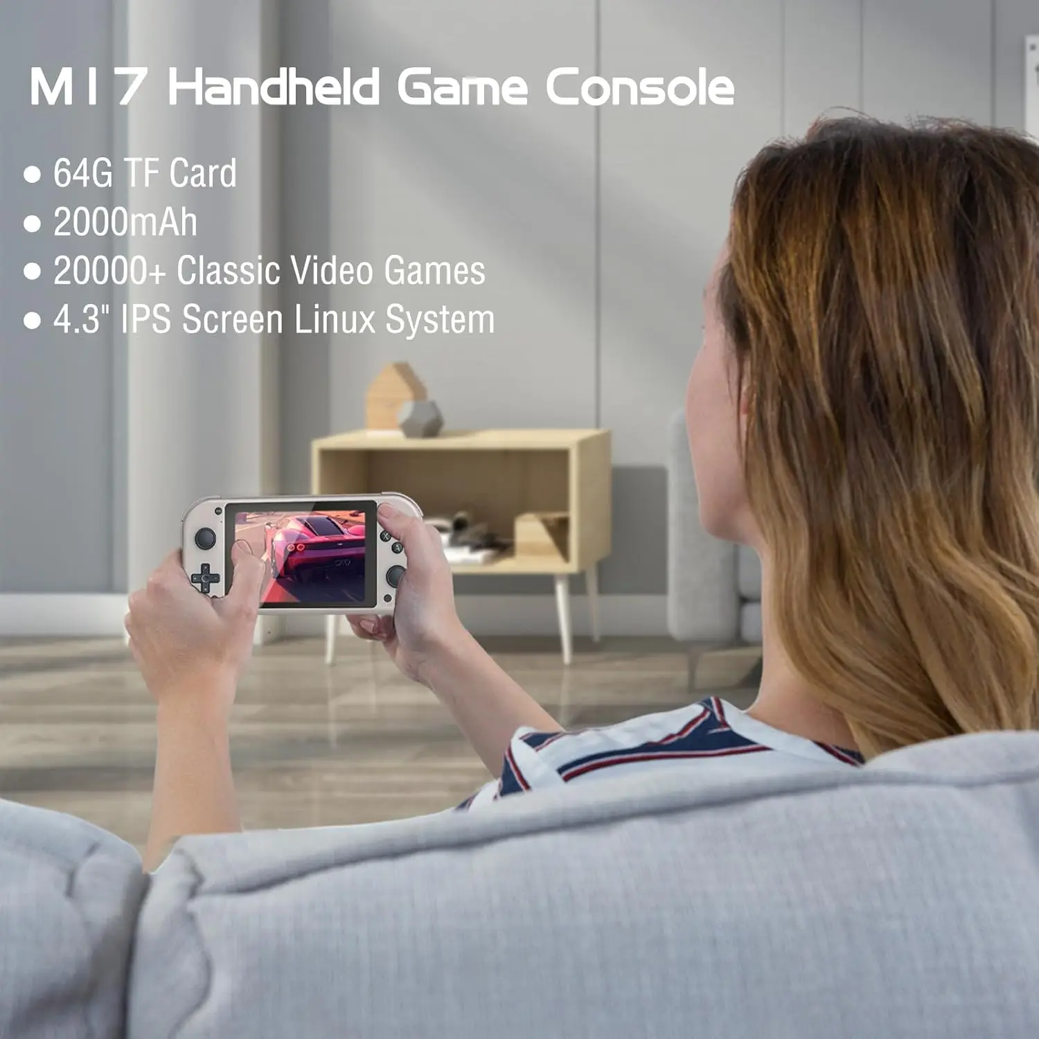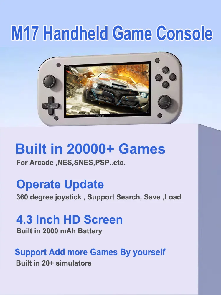 4.3 인치 고화질 IPS 화면: M17 핸드 헬드 게임 콘솔은 480*272 의 해상도로 4.3 인치 HD IPS 디스플레이 화면을 제공하여 매우 선명한 화면 효과를 제공합니다.