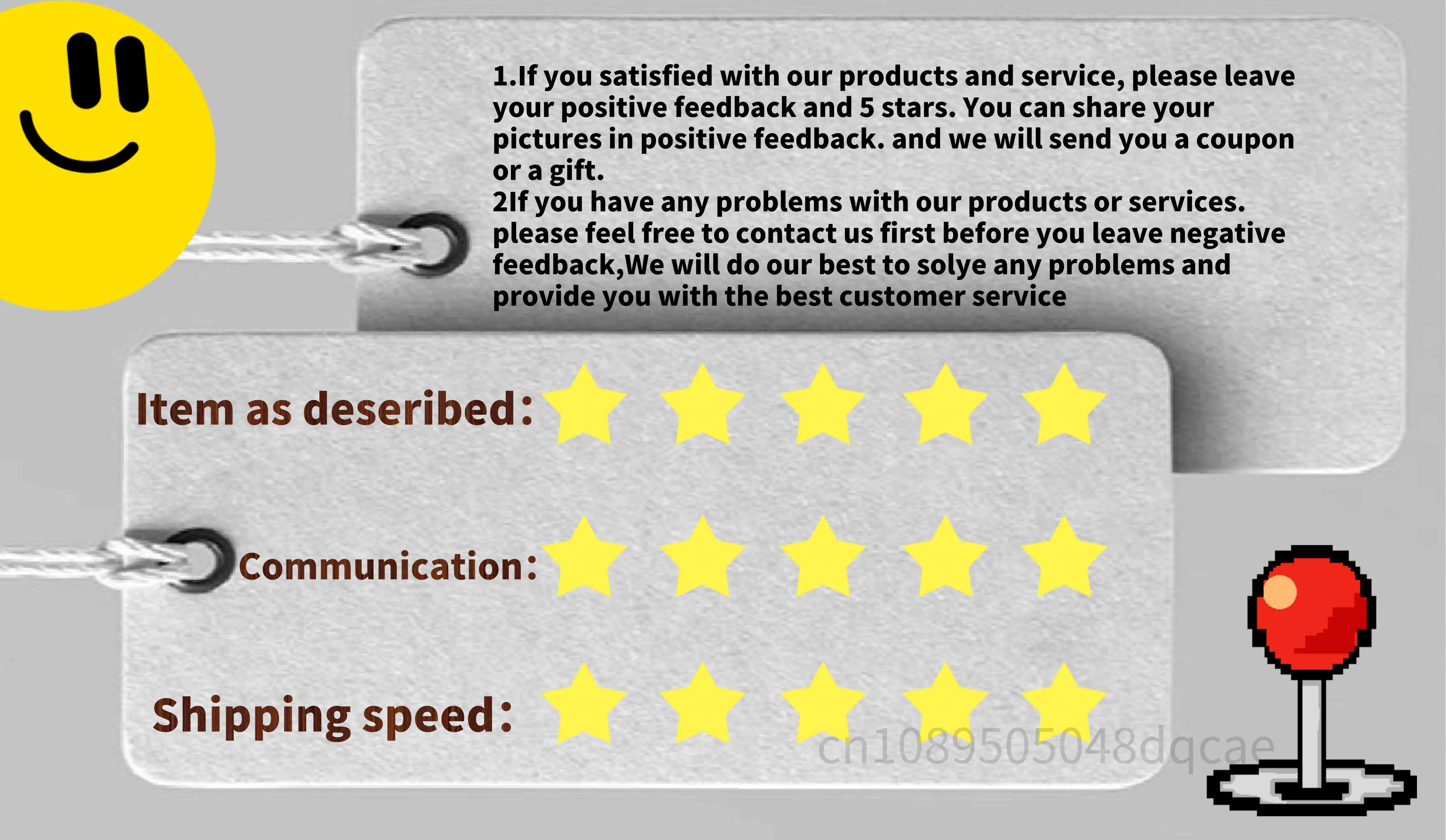 1. 제품 및 서비스에 만족하는 경우 긍정적 인 피드백과 별 5 개를 남겨주세요. 긍정적 인 피드백으로 사진을 공유하면 쿠폰이나 선물을 보내드립니다.