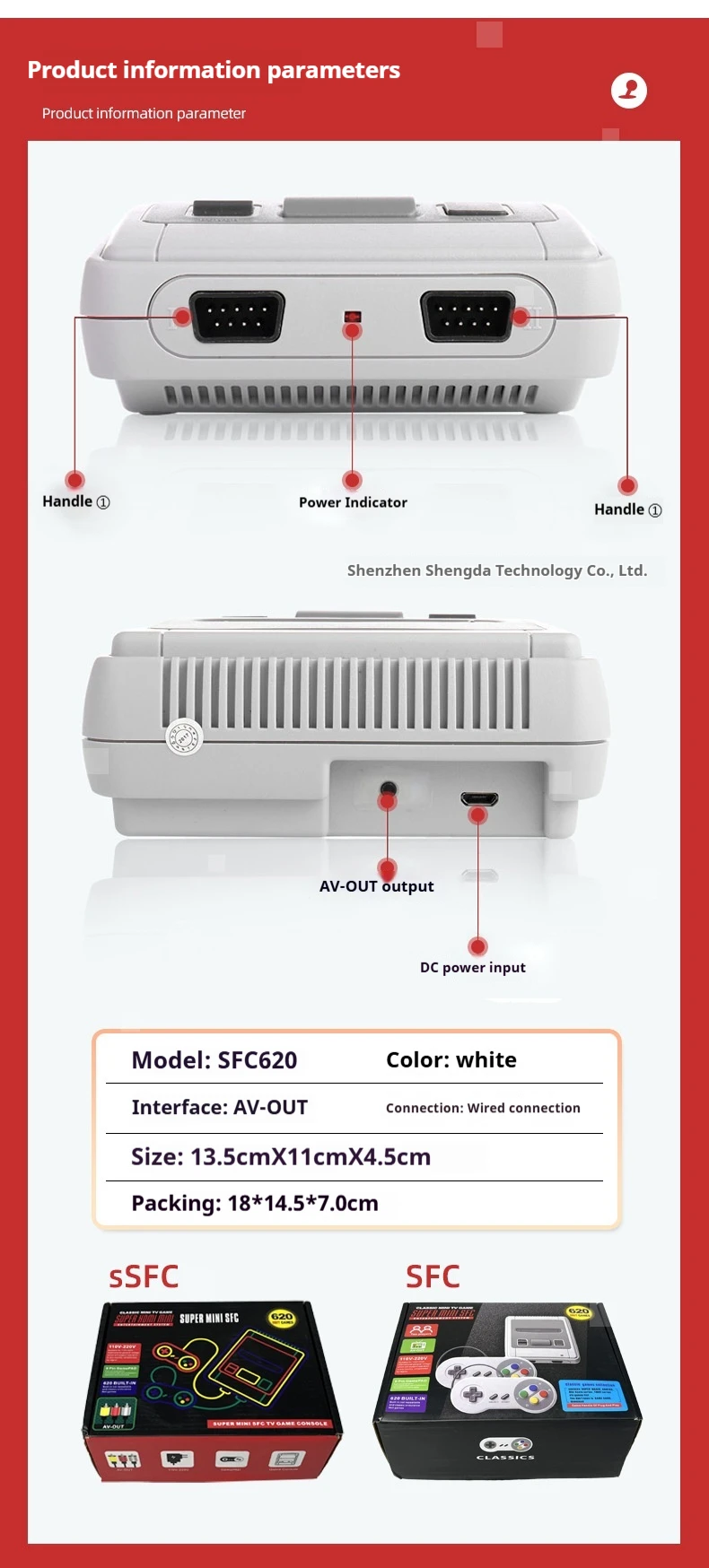 미니 TV 게임 콘솔 레트로 핸드 헬드 게임 플레이어 내장 620 클래식 게임 비디오 게임 콘솔 듀얼 gampad S