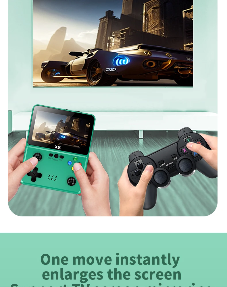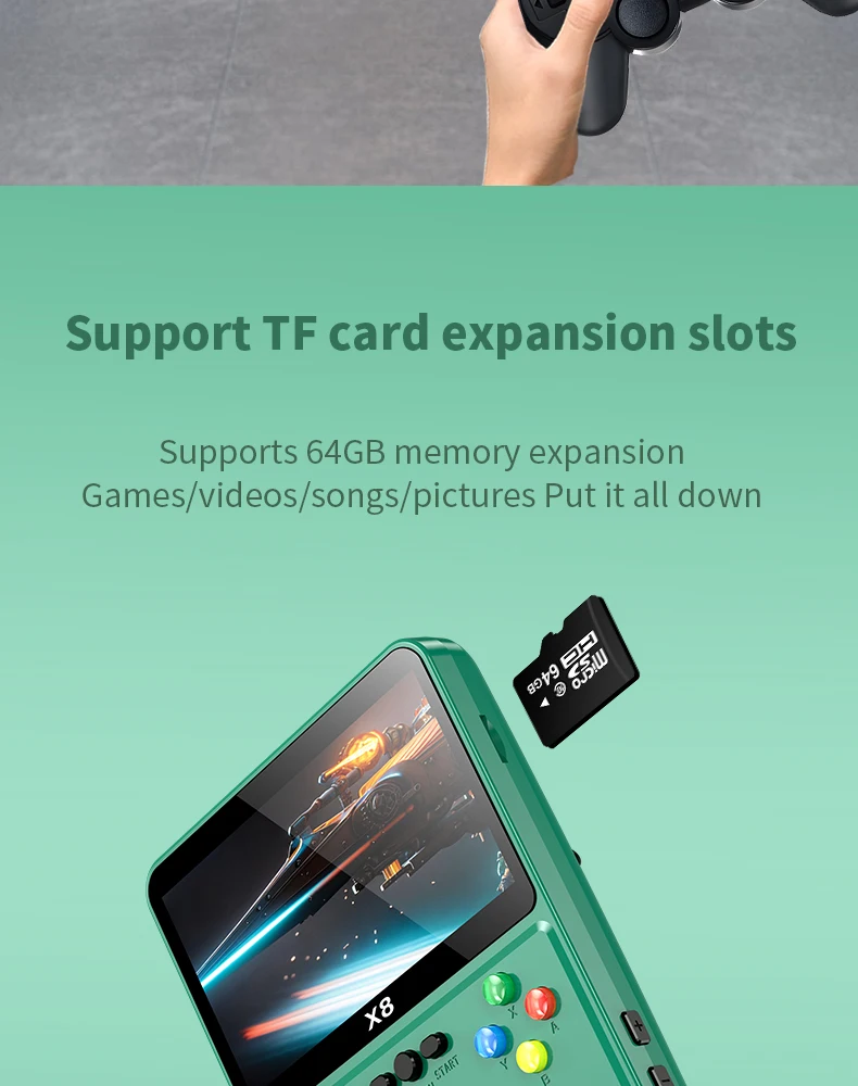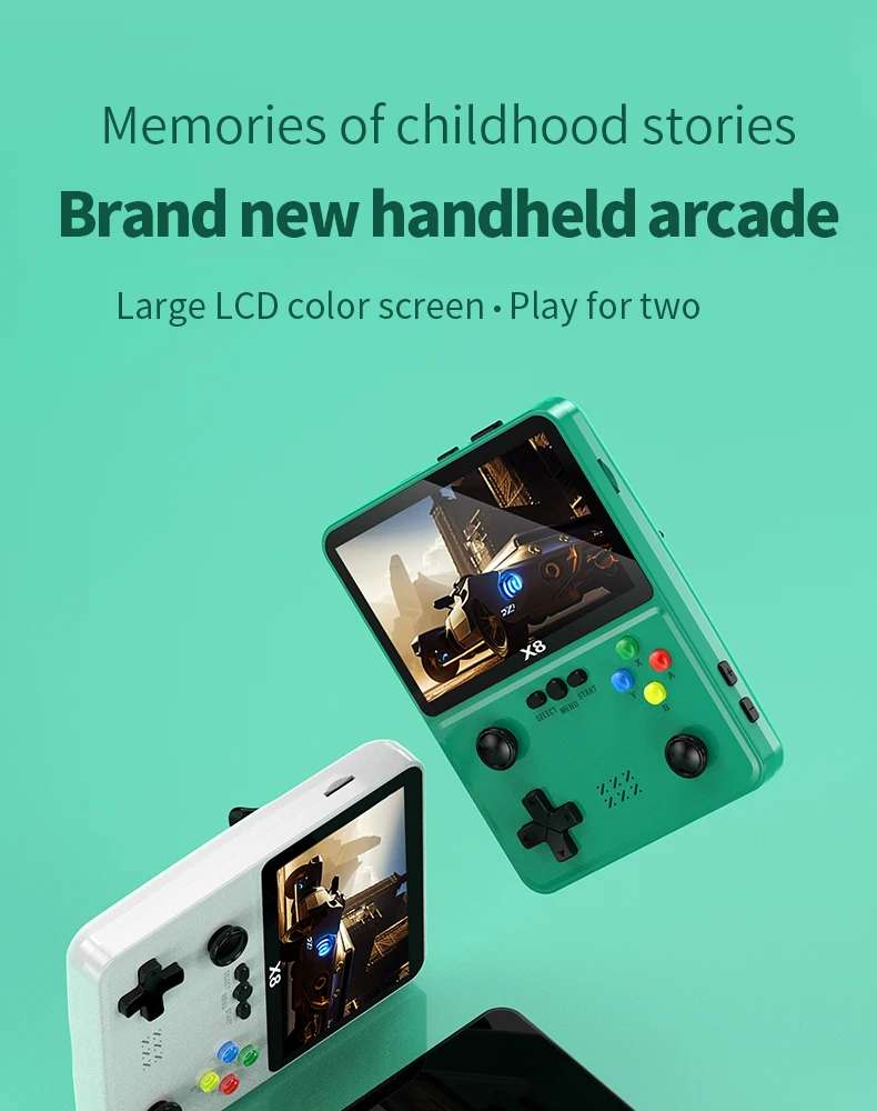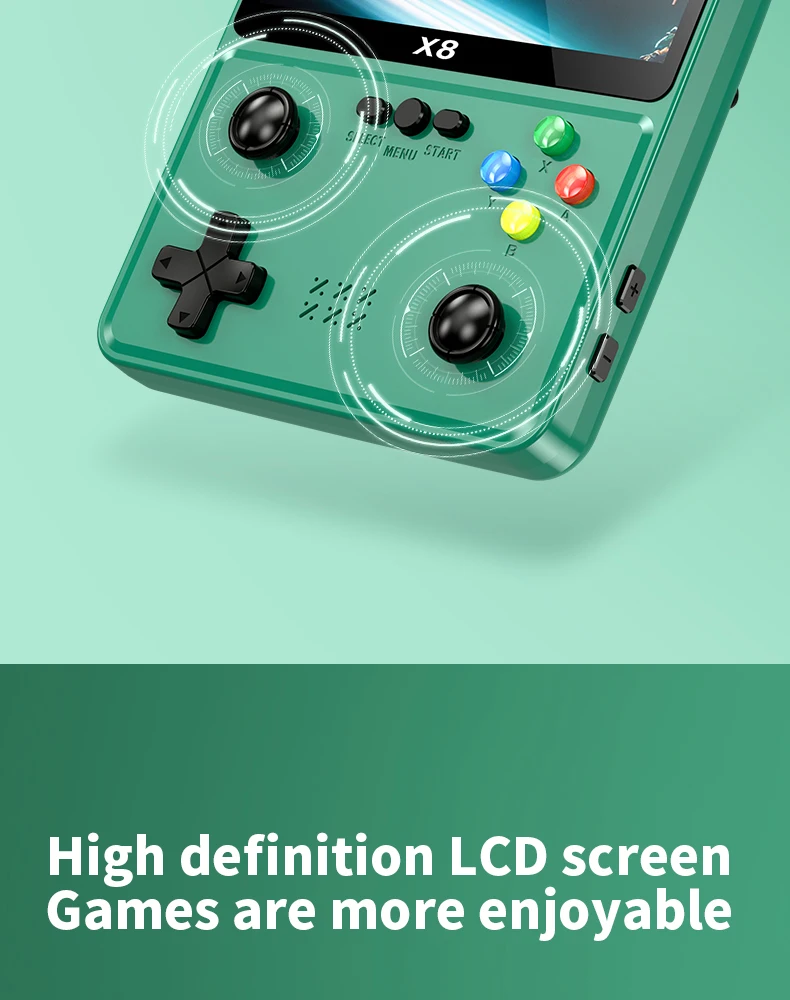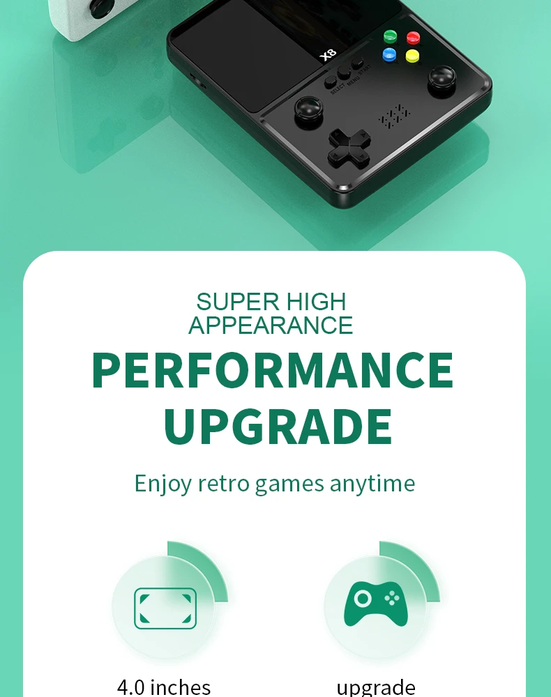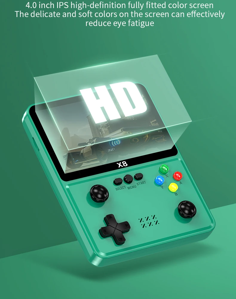 X8 레트로 휴대용 게임 콘솔 IPS 스크린 10 에뮬레이터 이중 작동 비디오 게임 플레이어 가정용 게임 콘솔