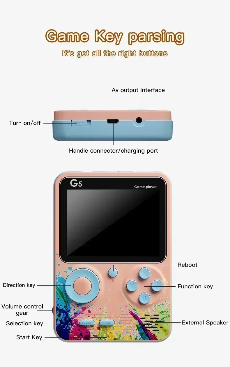 G5 레트로 휴대용 게임 콘솔 500 클래식 게임 3.0 인치 화면 휴대용 게임 패드 마카롱 컬러 1020mAh 충전식