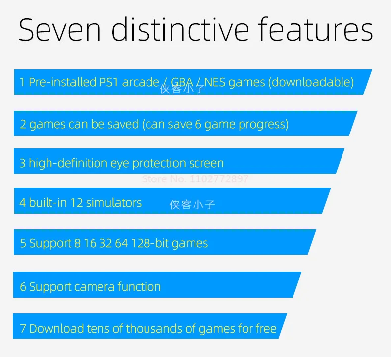 1 사전 설치된 PS1 아케이드, 4,GBA LNES 게임 (다운로드 가능)