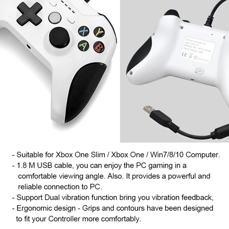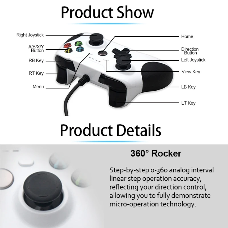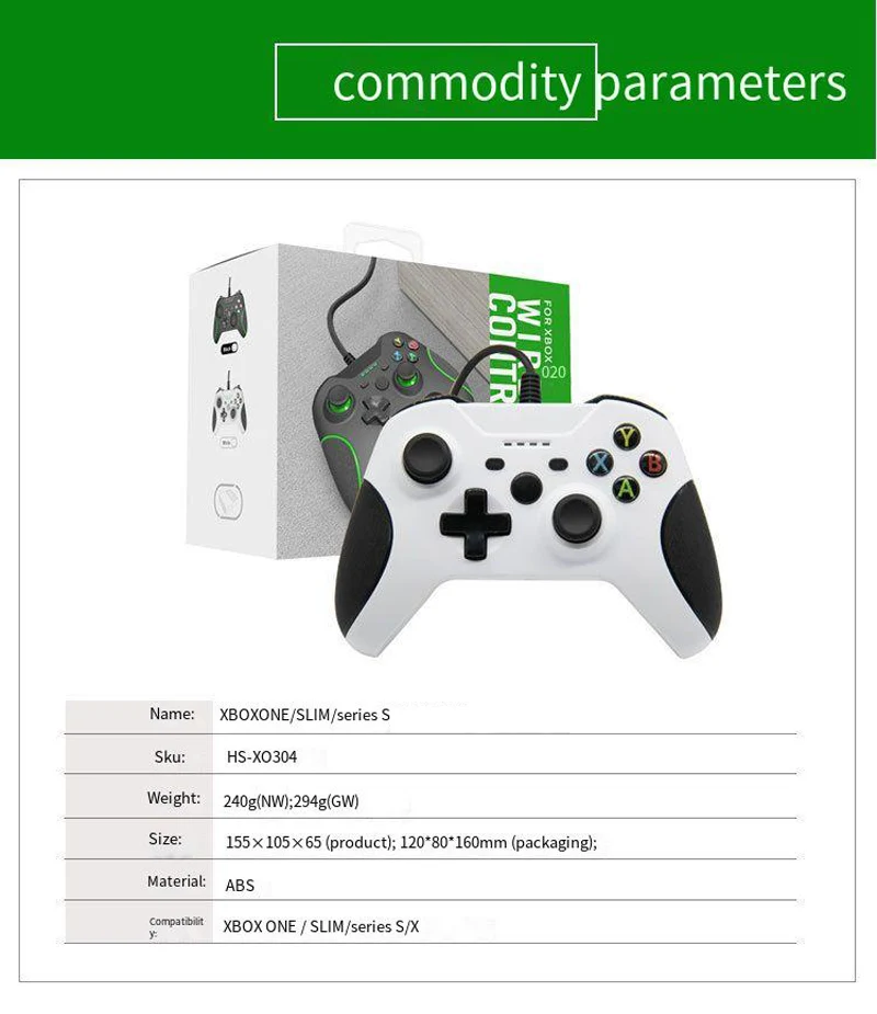 이름: 유선 게임컨트롤러 작동 전압: 5V작동 전류: 100MA제품 소재: ABS제품 무게: 270g제품 크기: 155*105*65MM유선: 1.75 미터인터페이스 유형: USB제어 방법: 유선해당 제품: XBOX ONE/XBOX ONE 슬림/PC용패키지 포함: 1 * 유선 컨트롤러