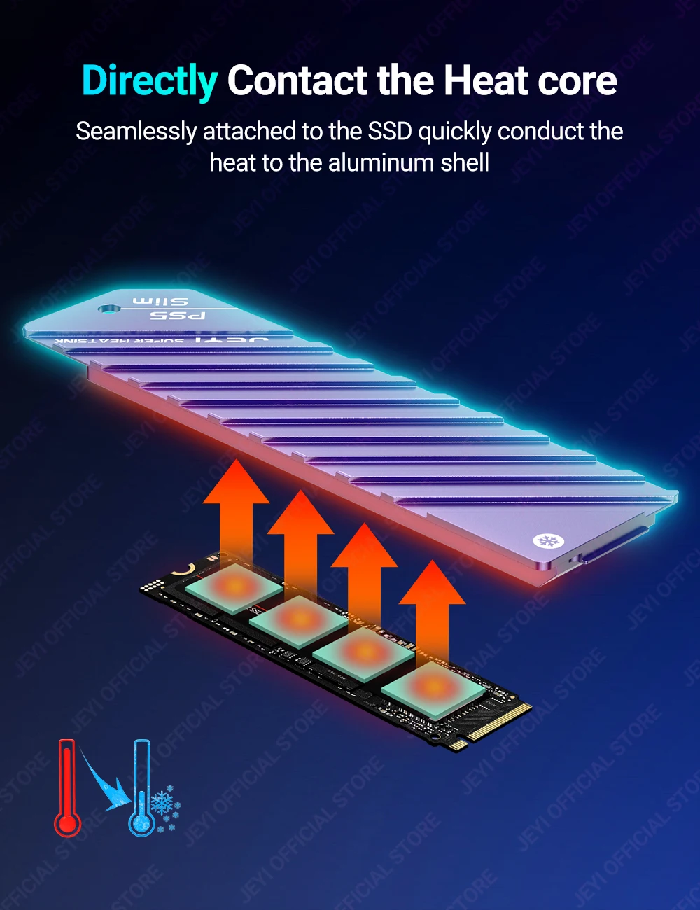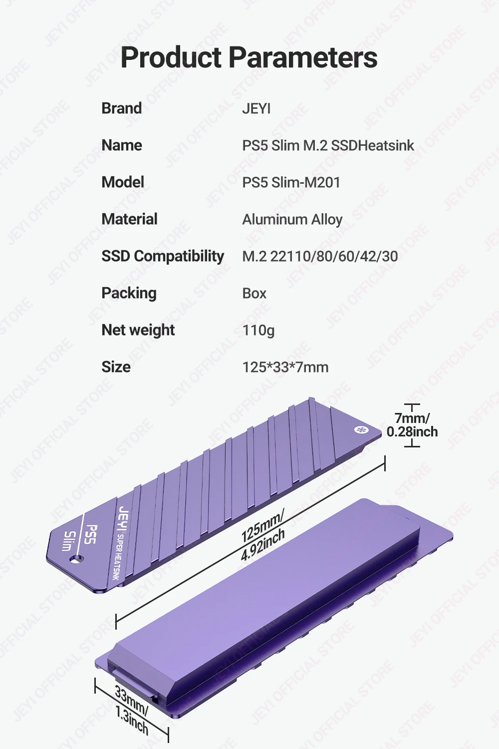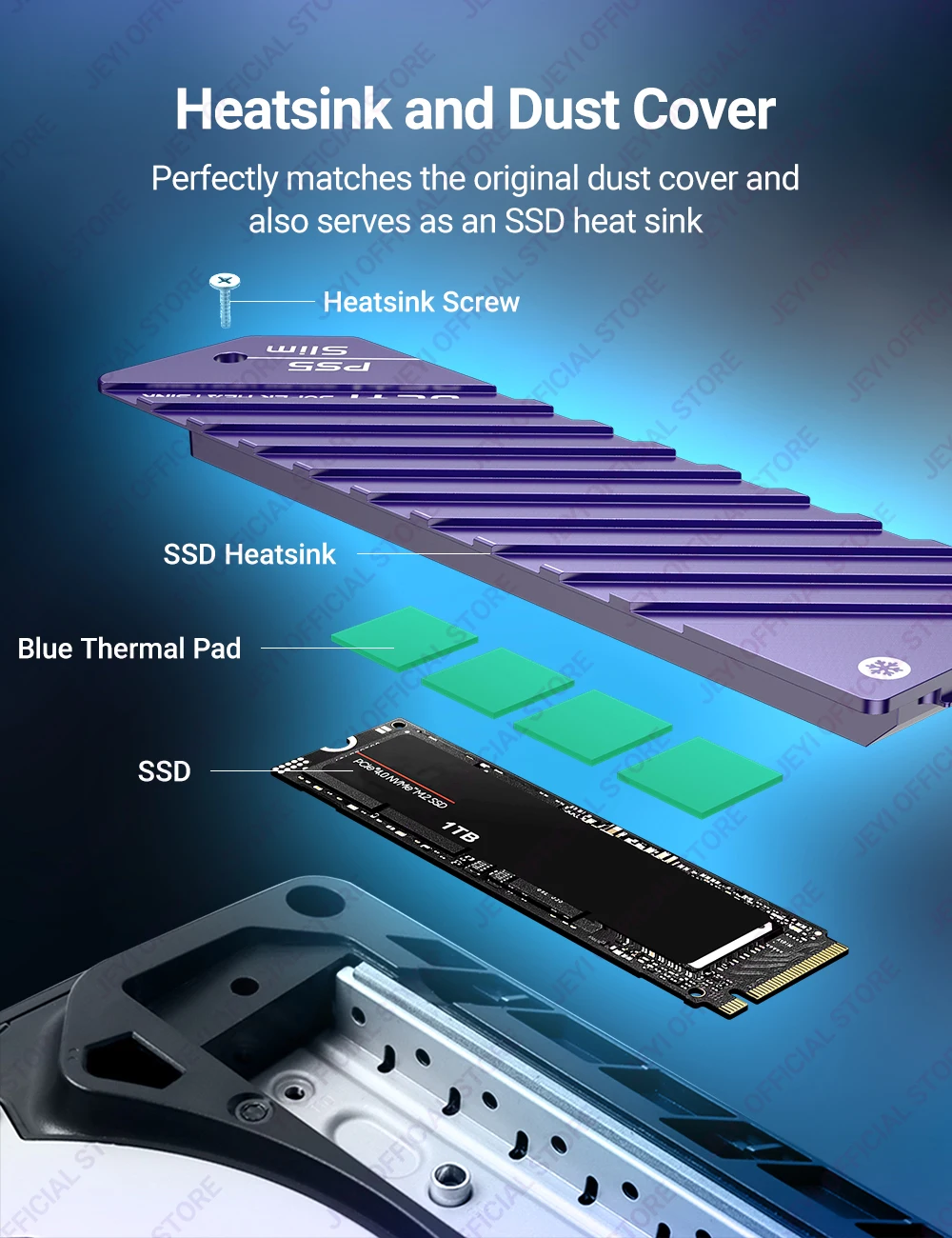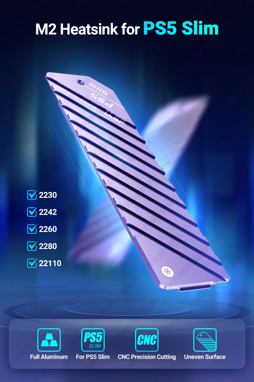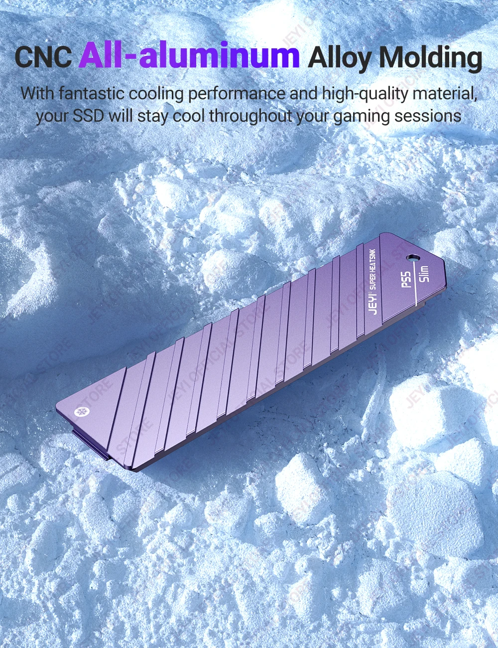 【PS5 슬림 전용 JEYI M.2 방열판] 통합 방열판이있는 PS5 Slim M.2 SSD 커버는 PS5 슬림에 맞게 설계되었으며 확장 된 저장 슬롯에 장착 된 SSD의 열 성능을 향상시킵니다. 핀 모양의 디자인은 PS5 의 확장 슬롯에 완벽하게 맞으며 1.05CM 두께의 마그네슘 알루미늄 합금으로 디자인되었습니다. SSD 방열판의 방열이 우수할수록 PS5 SLIM M.2 SSD 드라이브의 내구성이 높아집니다.