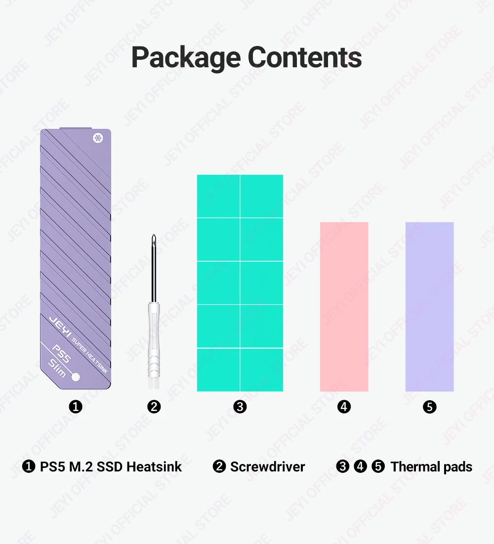 【패키지 포함】 PS5 SLIM용 1x SSD 방열판, 3x 열 패드, 1x 드라이버