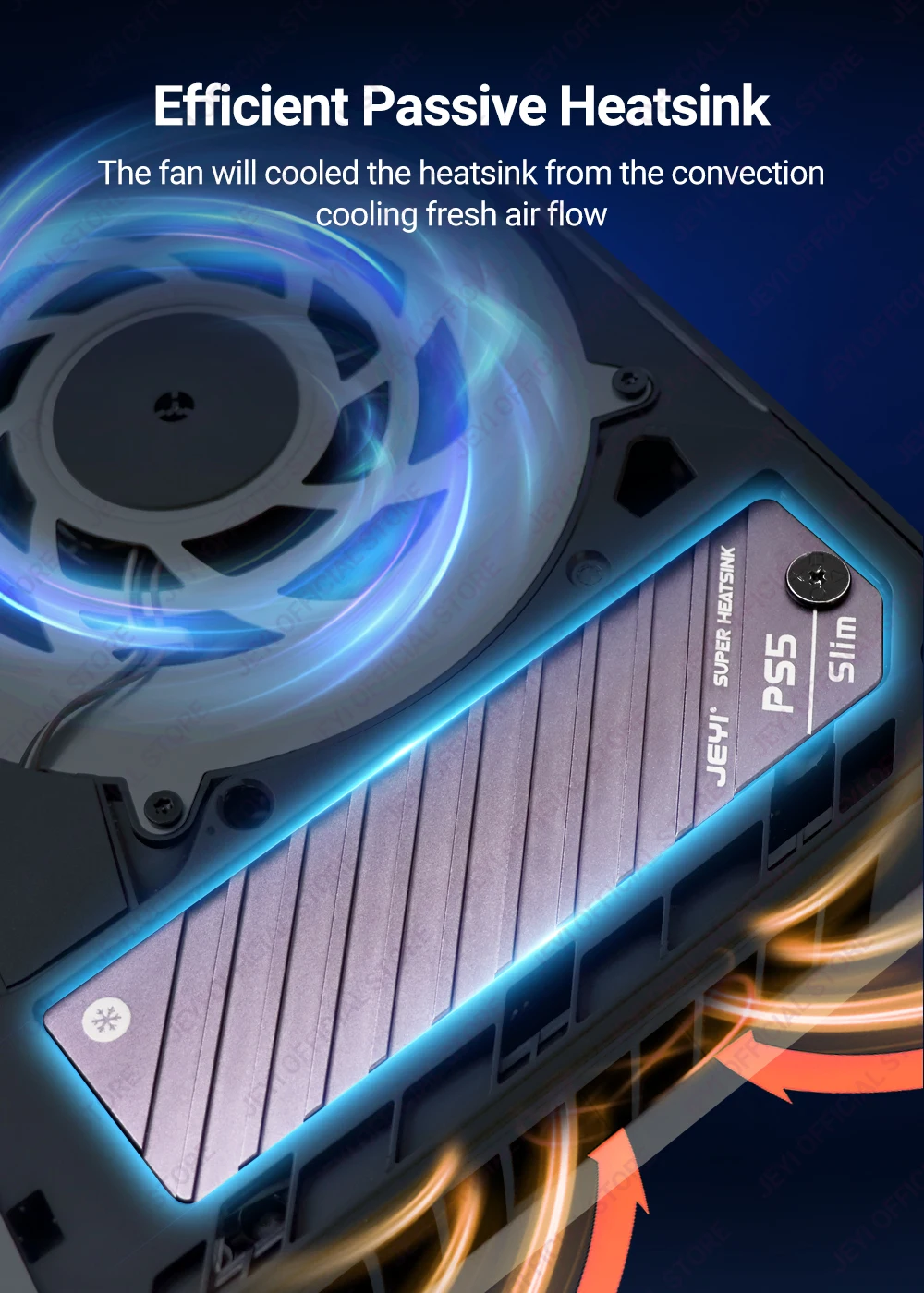 【SSD 방열판 및 커버 2 IN 1 】 금속 커버에만 열을 가두는 방열판을 만드는 대신 PS5 슬림 콘솔 커버를 대체하는 방열판을 설계했습니다. 이것은 더 큰 방열판 일뿐만 아니라 팬을 사용하여 더 나은 냉각을 허용합니다.