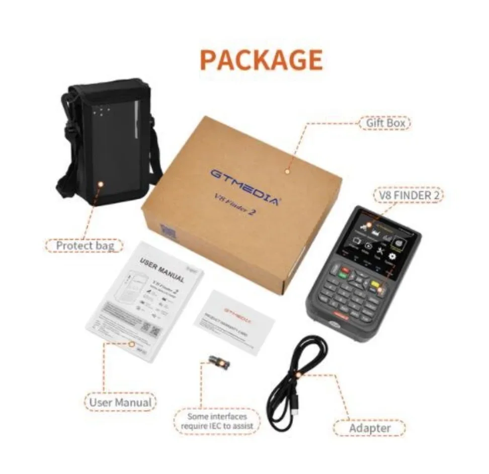 GTMEDIA V8 Finder2 는 DVB-S/S2 및 MPEG-2/4 H.264(8 비트) 호환 휴대용 위성 미터입니다. 컴팩트 한 크기, 가벼운 무게, 직관적 인 사용자 인터페이스, 긴 배터리 작동 시간 및 풍부한 기능 세트, 미터는 주거용 주택 또는 다중 주거지에 디지털 위성 TV 서비스를 설치하고 확인하는 데 필요한 모든 기능을 제공합니다.
