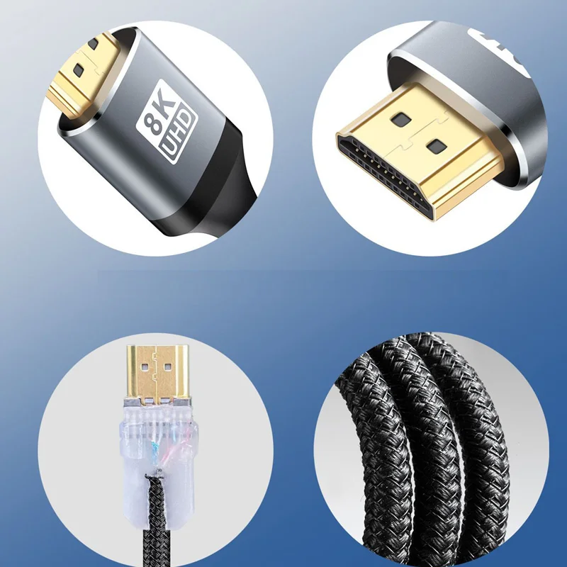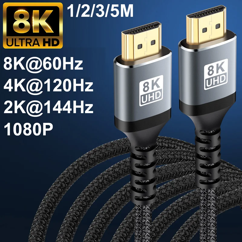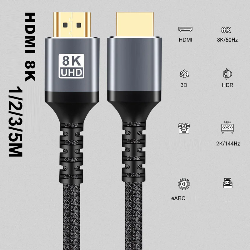 1/2/3/5/M Nylon Braid 8K@60Hz HDMI To HDMI 2.1 Male Audio video Cable Converter For Laptop PC Computer Monitor Camera HDTV PS4