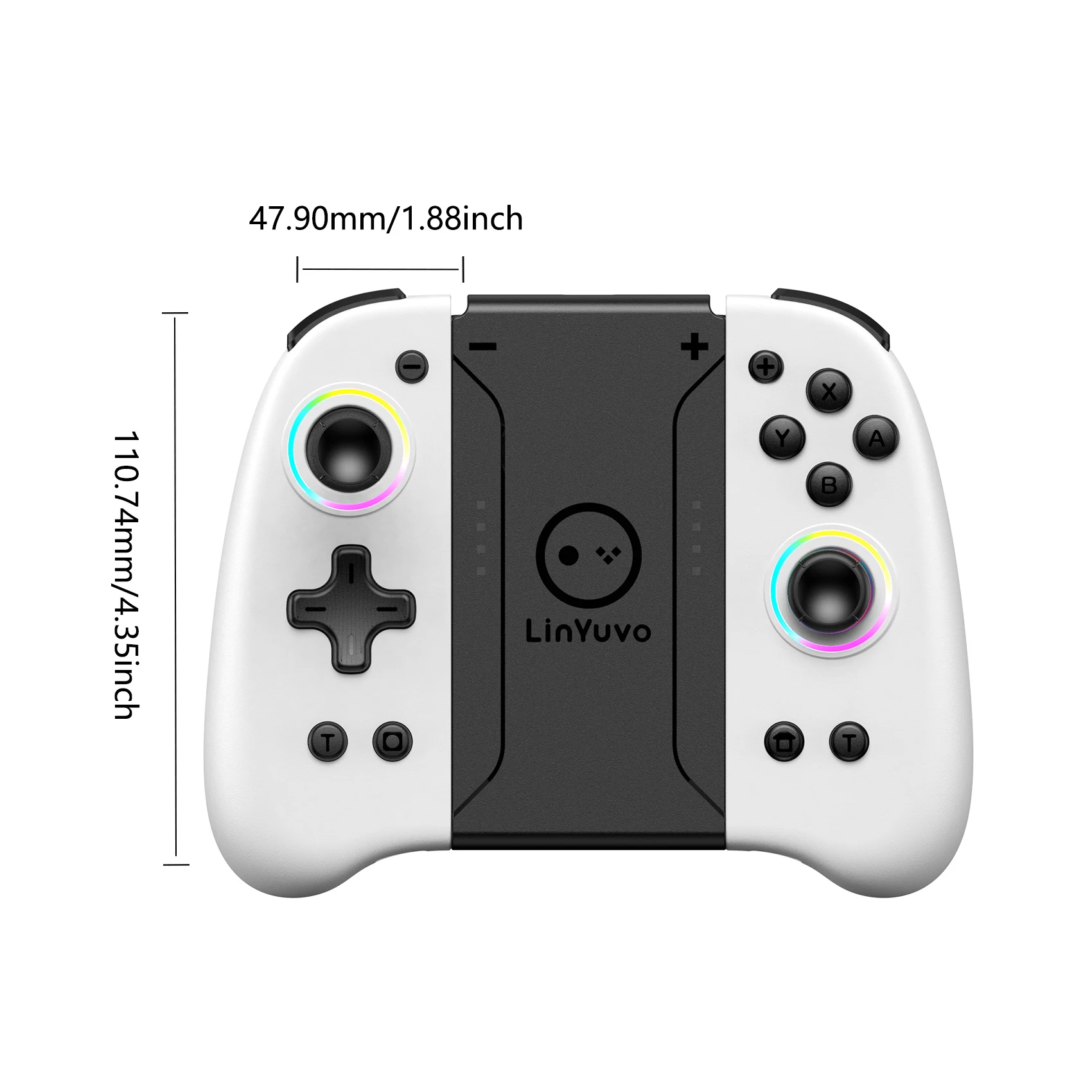 ? 혁신적인 디자인:게임 패드에는 색상을 변경할 수있는 8 개의 RGB 조명이 있으며 게임 세션에 생생하고 대화 형 요소를 추가합니다. 게임 패드뿐만 아니라 스위치를위한 멋진 액세서리입니다.