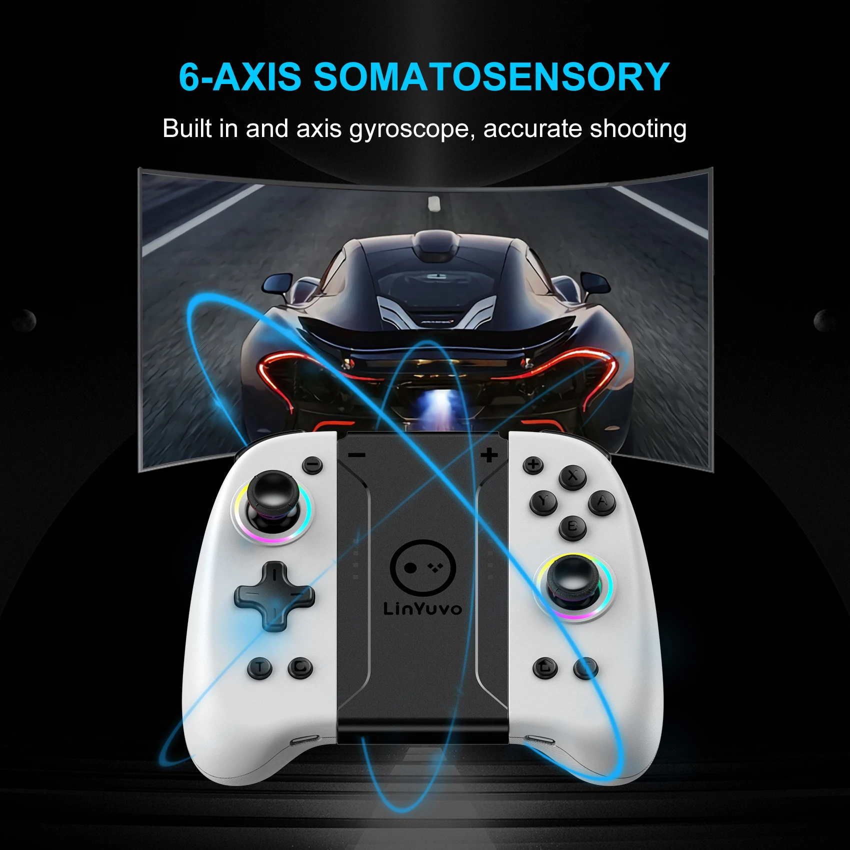 스위치/라이트/스위치 OLED용 8 색 RGB 조명이 있는 LinYuvo KS31 유성등 무선 조이패드, 6 축 자이로, 터보 및 진동 포함