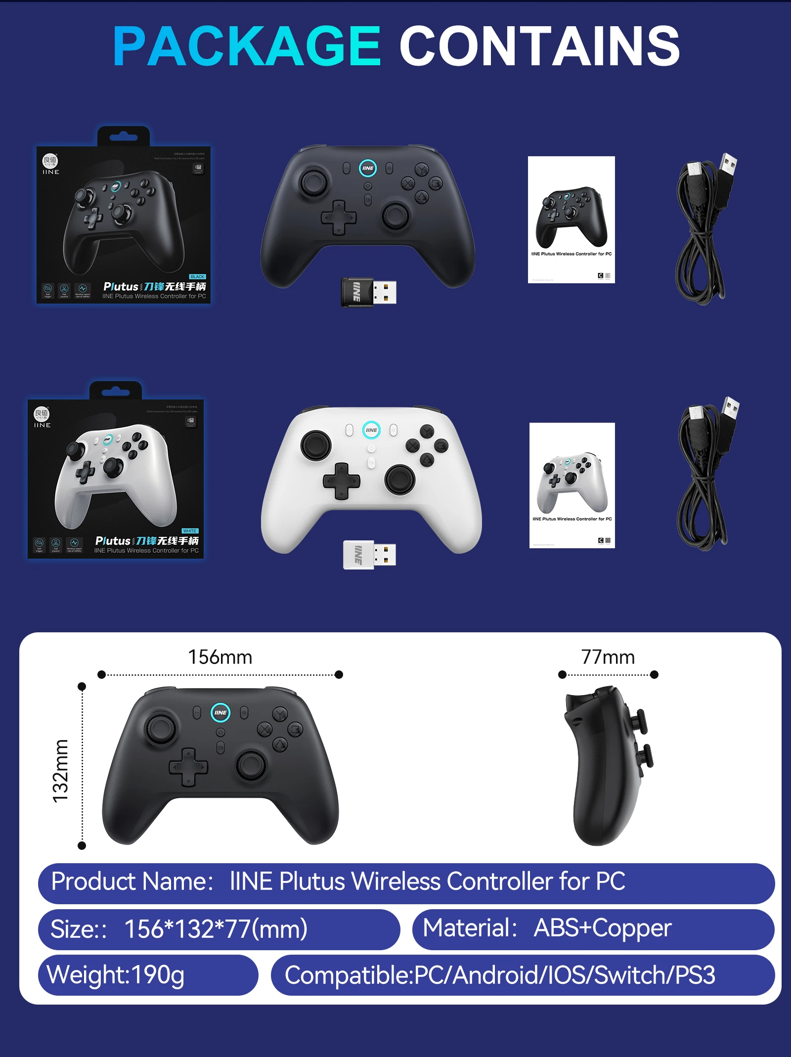 IINE PLUTUS PC용 무선 컨트롤러 256 레벨 홀 트리거 1000Hz 홀 조이스틱 과충전 보호