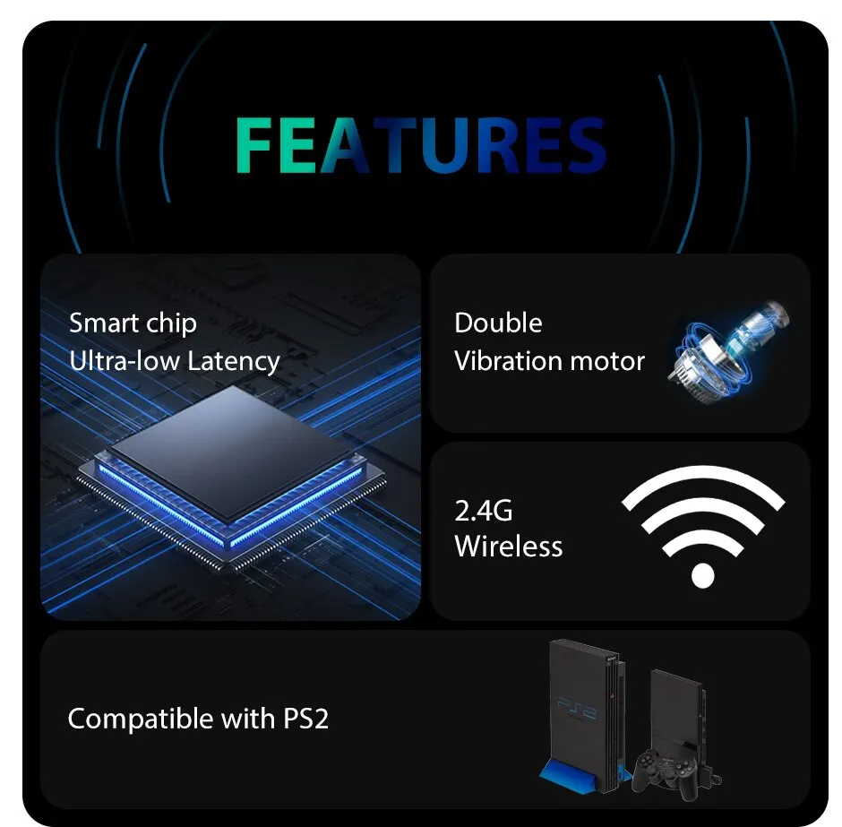 무선 컨트롤러 게임패드 듀얼 진동 조이스틱 PS2 콘솔 조이패드 USB PC 게임 컨트롤 2.4G