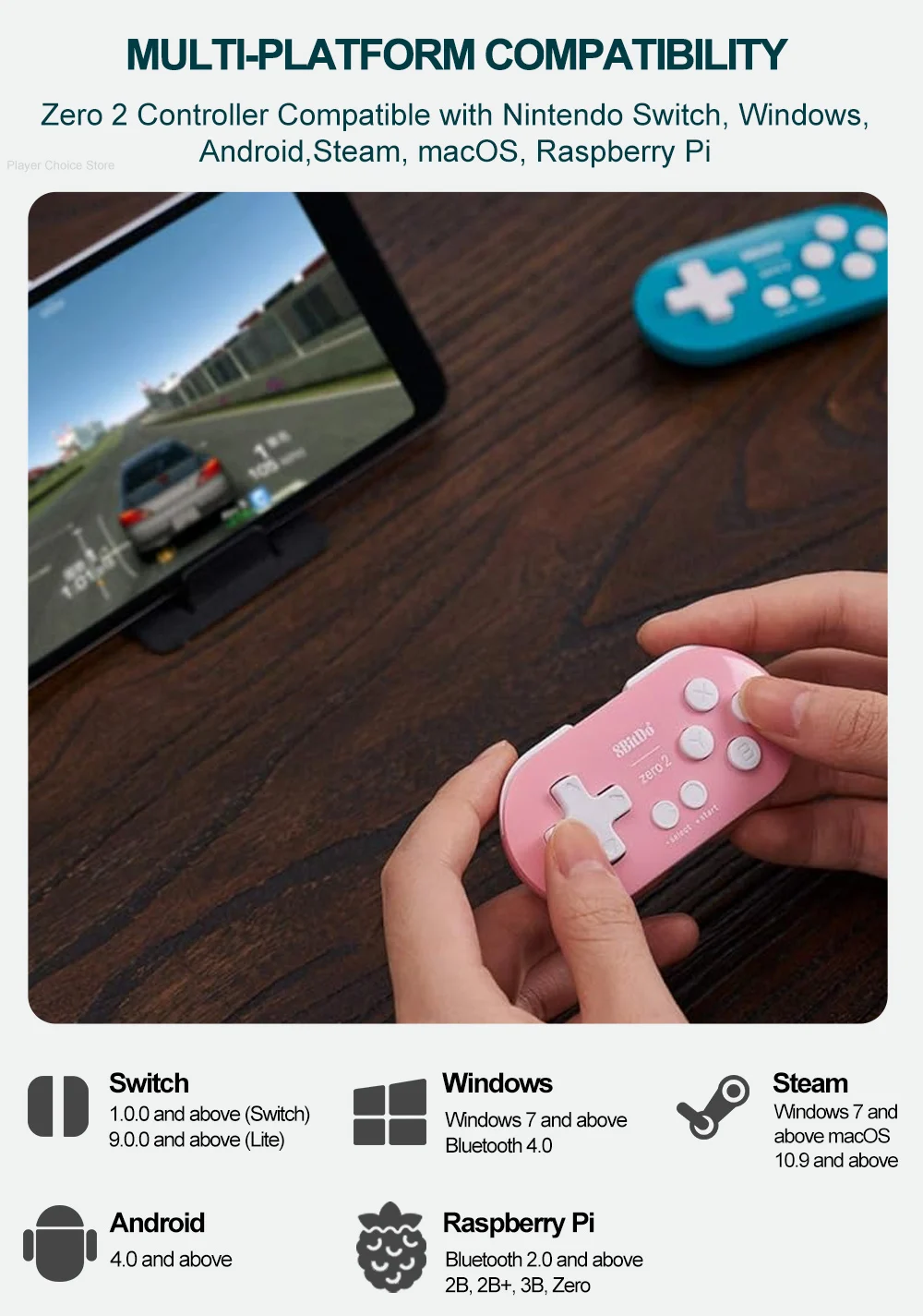 닌텐도 스위치와 호환되는 제로 2 컨트롤러, 윈도우, 안드로이드, 스팀, macOS, 라즈베리 파이