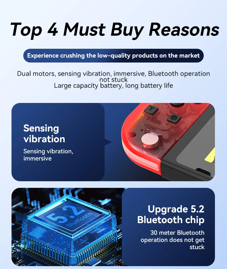 2024 기쁨 패드 글레어 스위치 컨트롤러 무선 블루투스 게임 패드 조이스틱 조이콘 (L/R) NS 용 모션 감지 이중 진동
