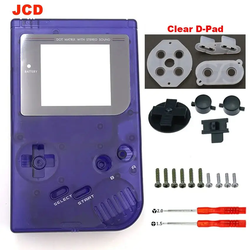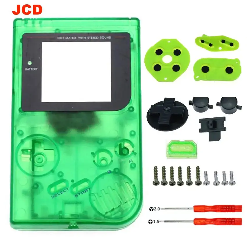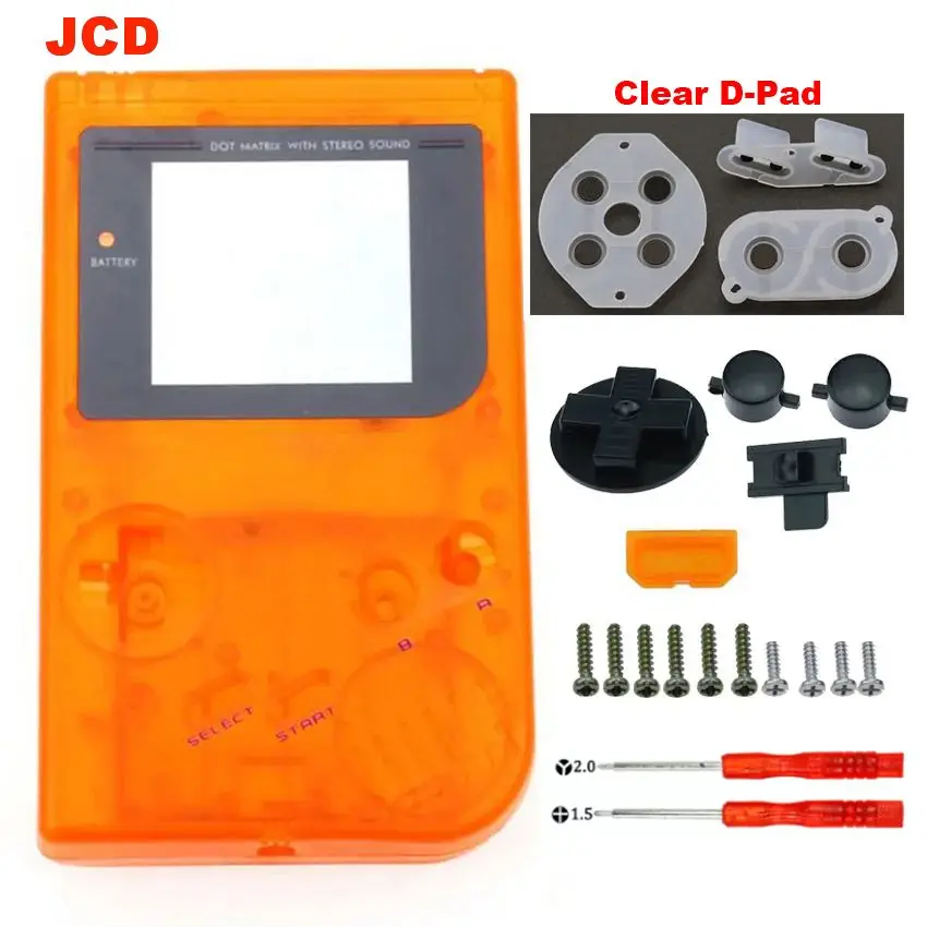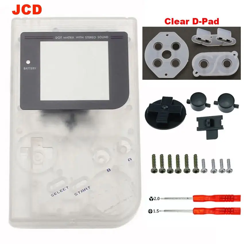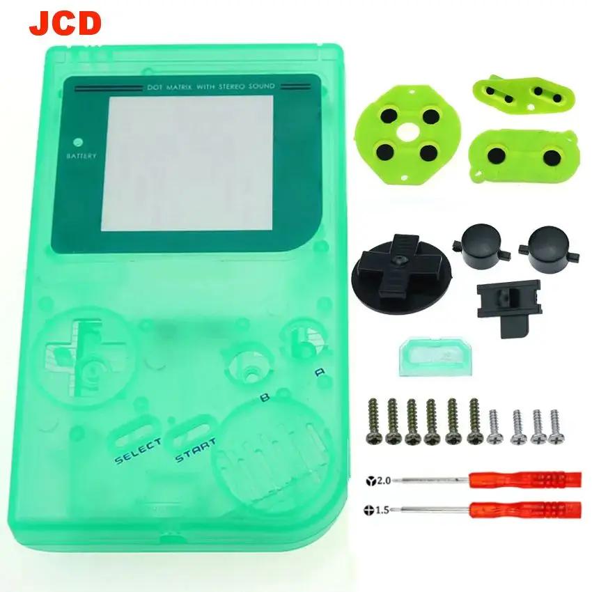 GameBoy Classic GB GBO + 고무 D 패드 + 드라이버 용 1 세트 솔리드/클리어/발광 풀 하우징 쉘 커버 케이스 버튼 키트