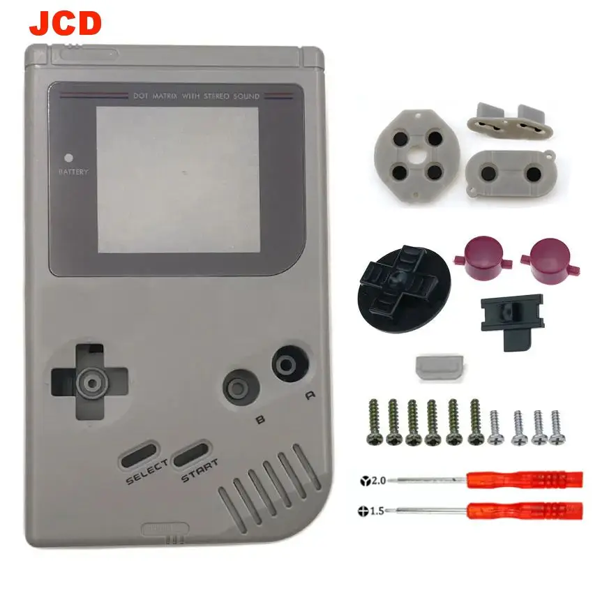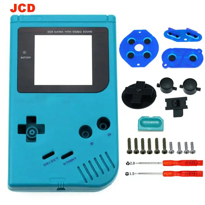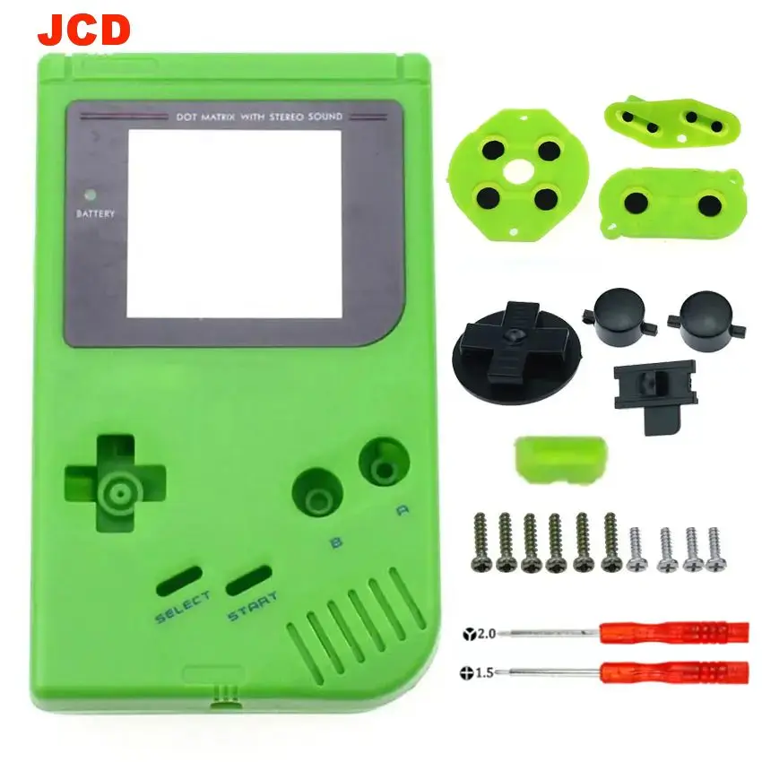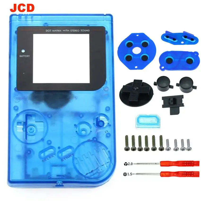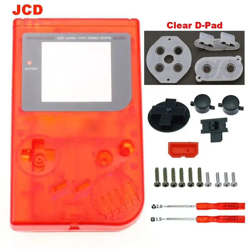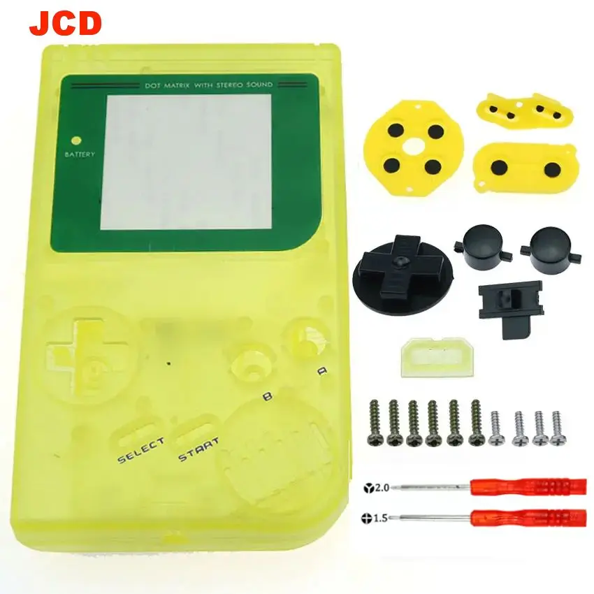 GameBoy Classic GB GBO + 고무 D 패드 + 드라이버 용 1 세트 솔리드/클리어/발광 풀 하우징 쉘 커버 케이스 버튼 키트