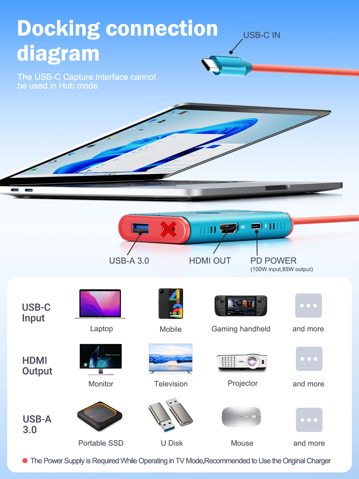 이 제품에는 HDMI, USB 3.0, 100W 전원 공급 충전 포트가 있으며, 다양한 요구 사항을 충족시키기 위해 3 개의 포트를 동시에 확장 할 수 1080P 비디오 출력은 대부분의 HDTV와 호환됩니다. HDMI 인터페이스가있는 모니터, 프로젝터 및 기타 장치, USB3.0 최대 5Gbps 전송 속도. USB C 변환기는 스위치/스위치 OLED/스팀 데크/전화/패드/노트북과 같은 Nintendo USB Type C 장치를 지원합니다. 추가 드라이버가 필요하지 않습니다.