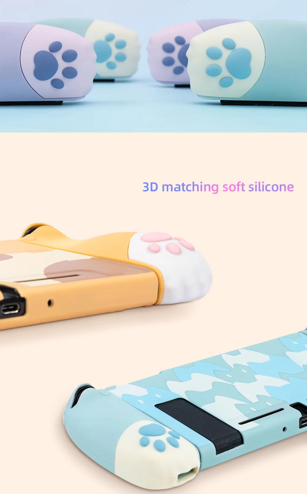 GeekShare Funda Oled 스위치 케이스 실리콘 소프트 쉘 OLED 커버 스위치 액세서리용 3D 귀여운 고양이 발