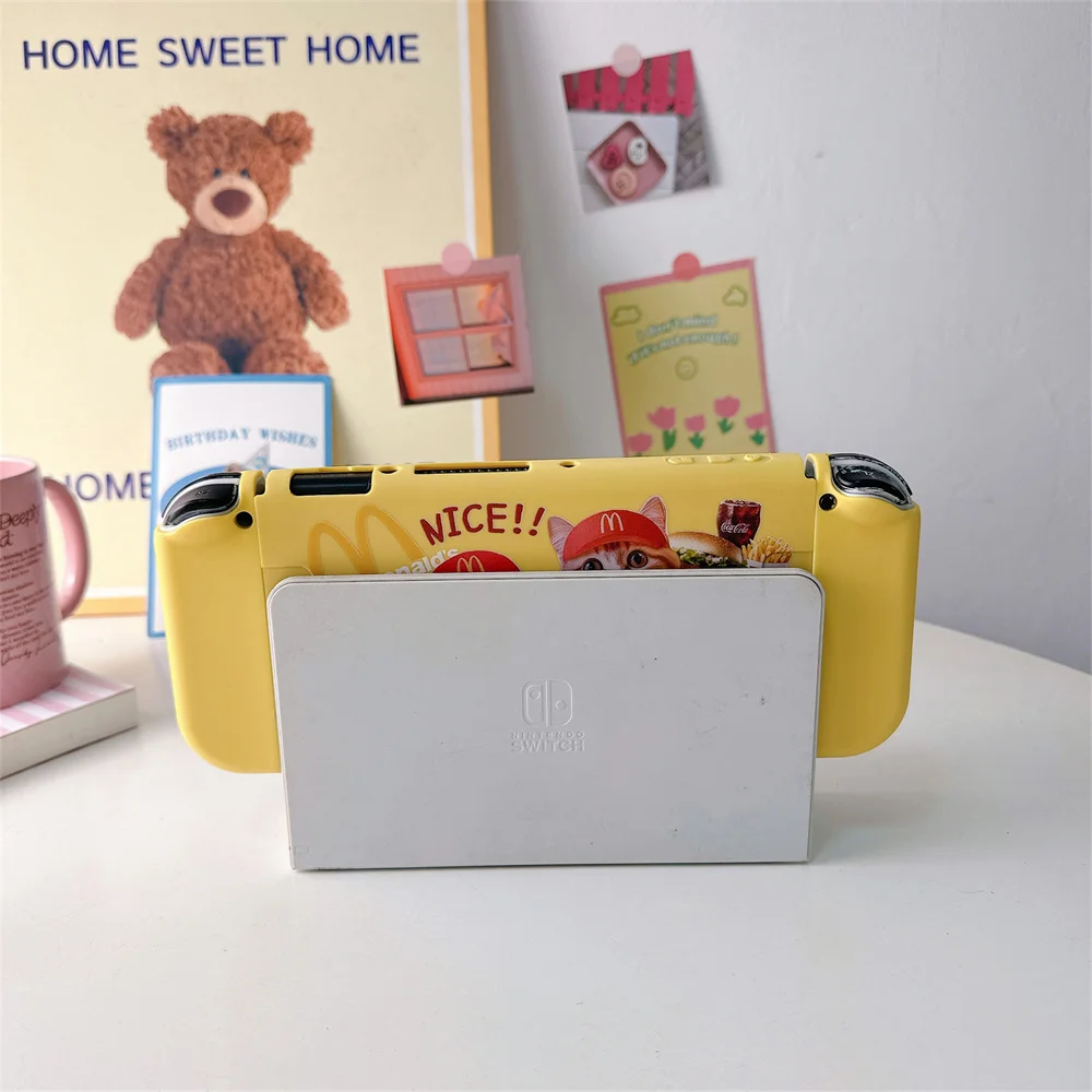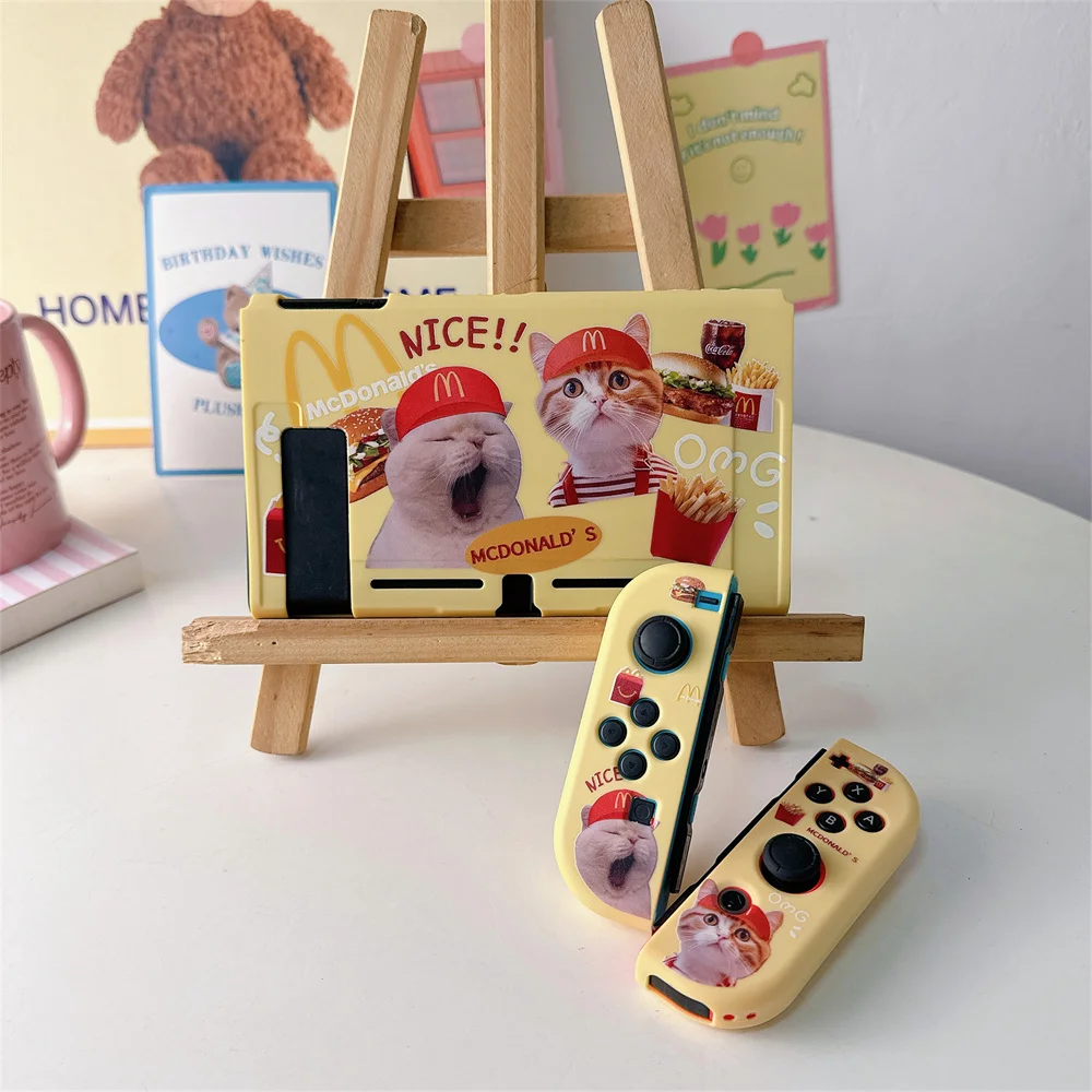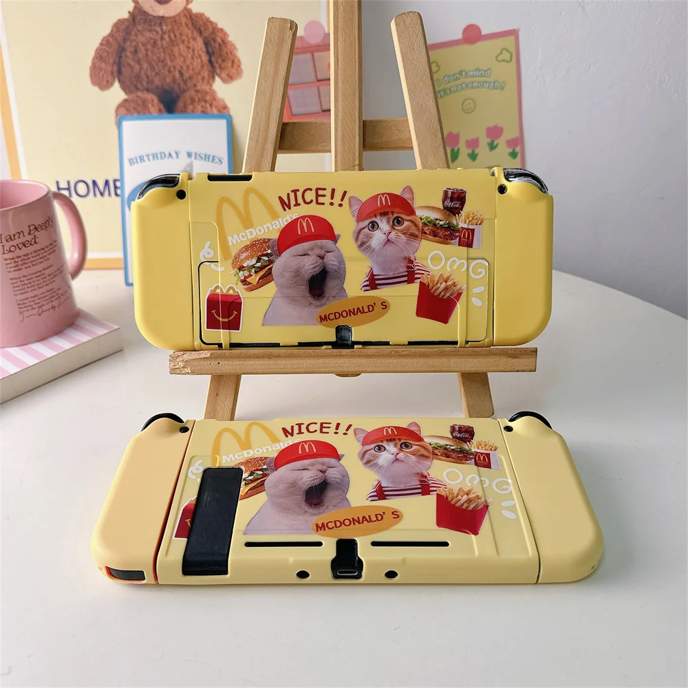 닌텐도 스위치용 귀여운 만화 고양이 패턴 보호 케이스 Oled 보호대 커버 NS 게임 콘솔 액세서리