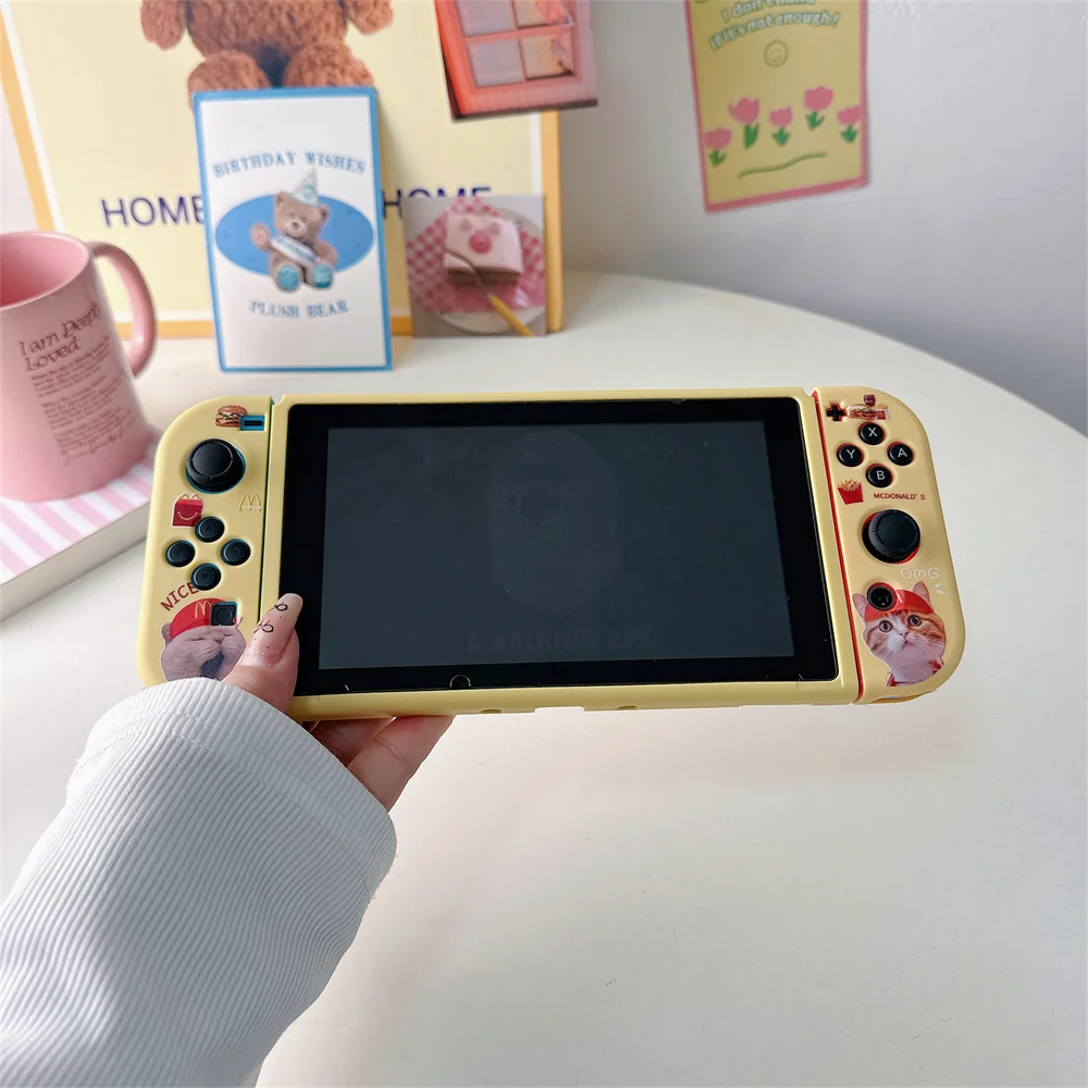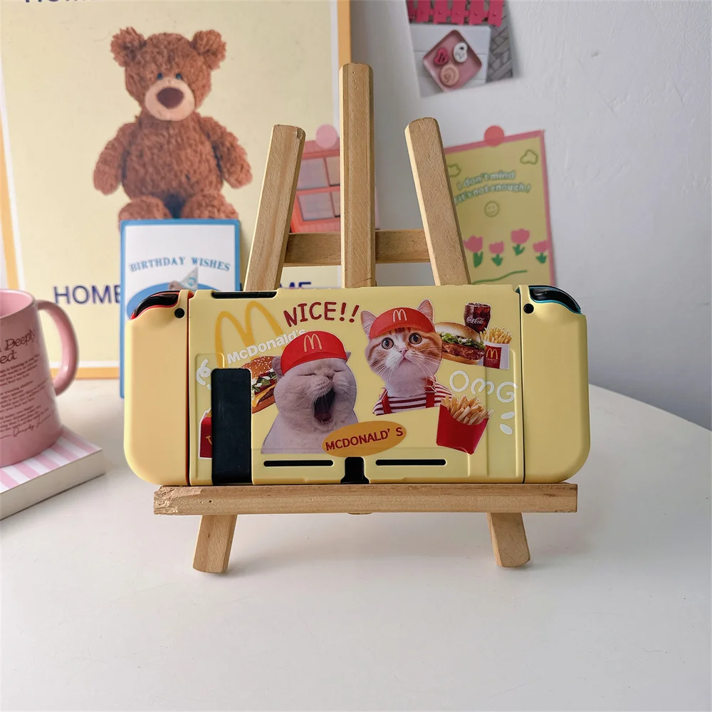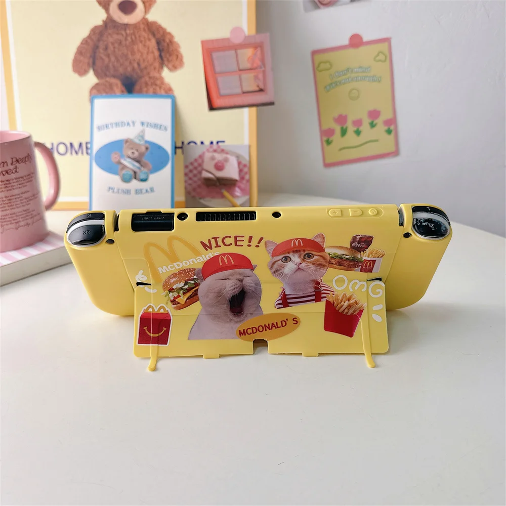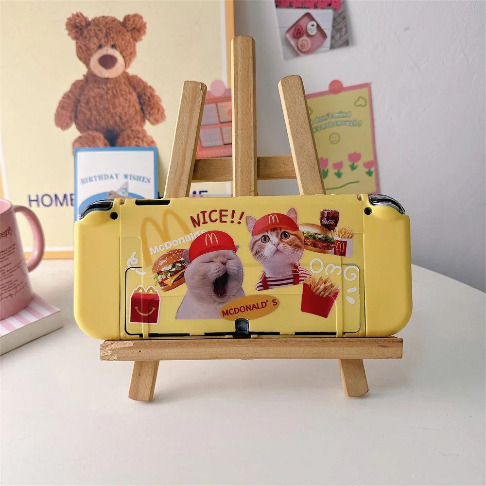 닌텐도 스위치용 귀여운 만화 고양이 패턴 보호 케이스 Oled 보호대 커버 NS 게임 콘솔 액세서리