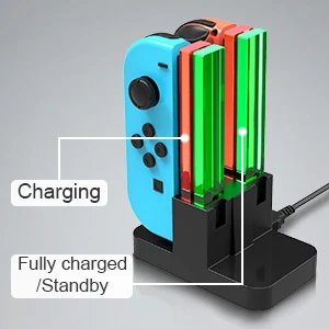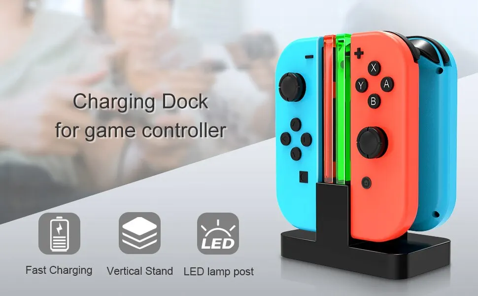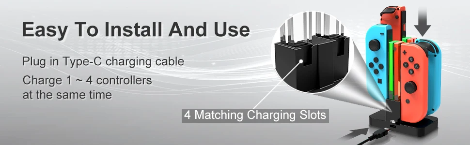 ? 도킹 스테이션:도킹 스테이션 디자인을 사용하면 최대 4 개의 Nintendo Switch 컨트롤러를 한 번에 쉽게 충전 할 수있어 시간과 번거 로움을 절약 할 수 있습니다.