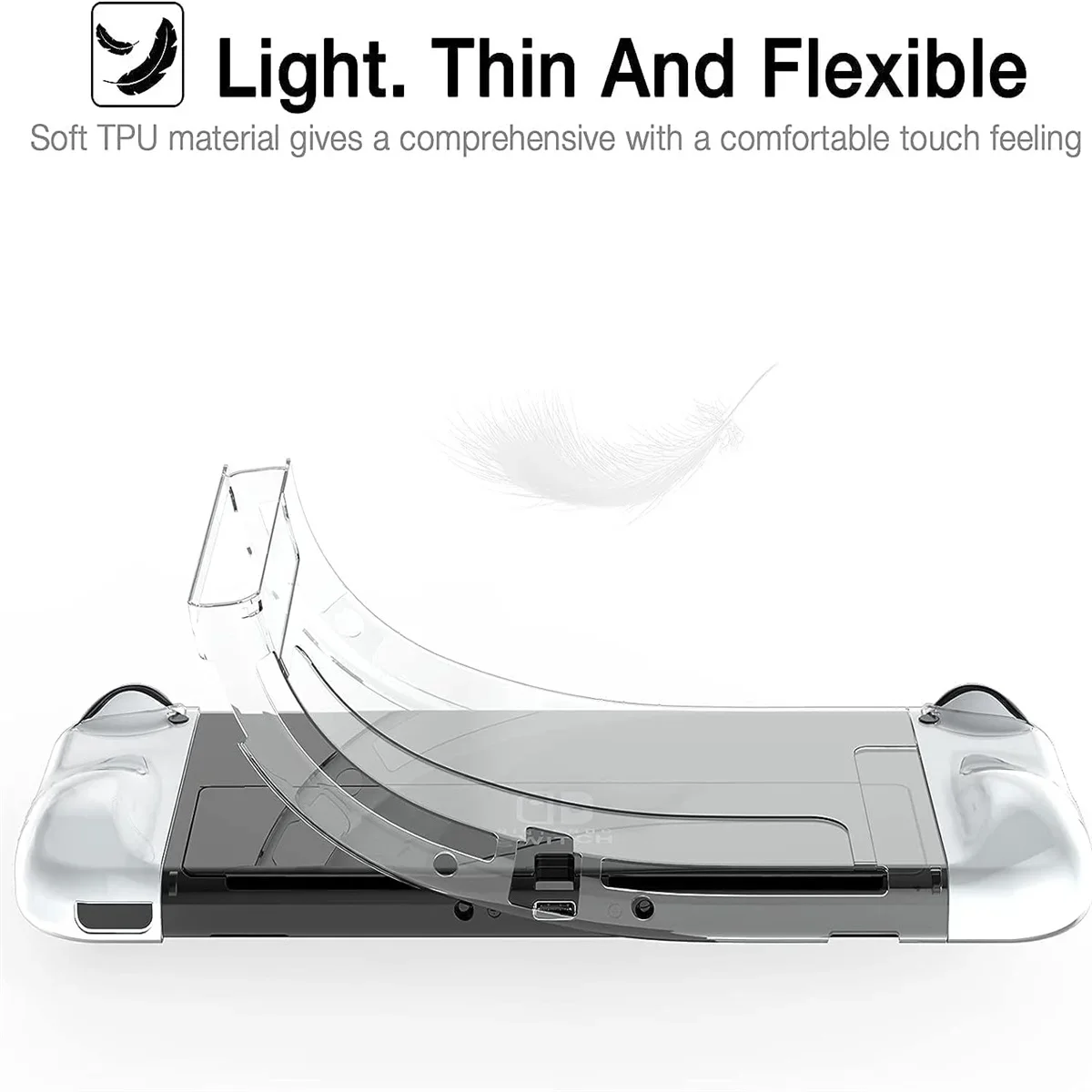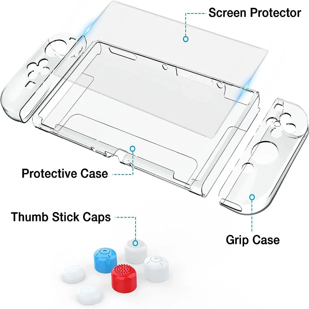 닌텐도 스위치 OLED 보호 케이스 TPU 소재 분할 케이스 스크린 강화 필름 및 6 엄지 키캡 포함