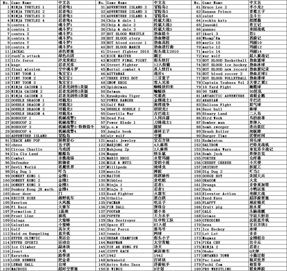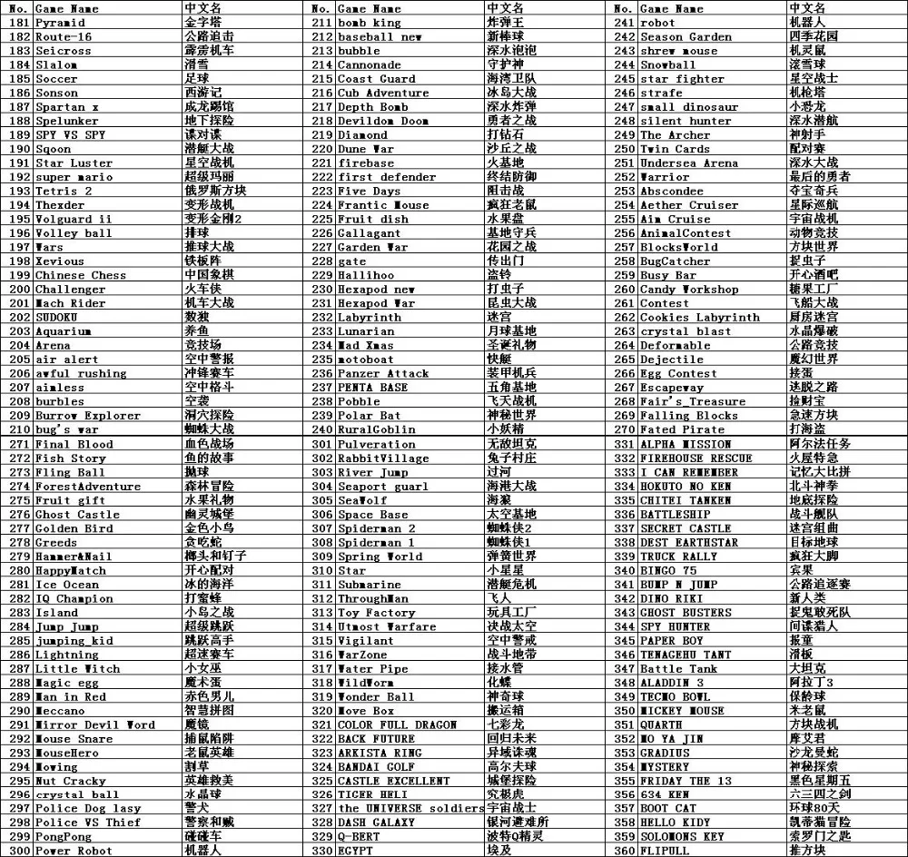 1. 우리 게임은 NTSC 및 PAL 형식 콘솔을 지원합니다. 일반적으로 NTSC 콘솔에서 테스트 한 다음 프리스트에서 PAL cosole에서 사용할 때, "재설정" 3-5 번을 눌러야합니다. 그러면 잘 재생할 수 있습니다. 2. 게임 목록이 필요하면 메시지를 남겨주세요. 감사합니다.