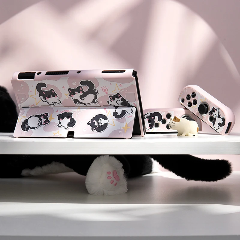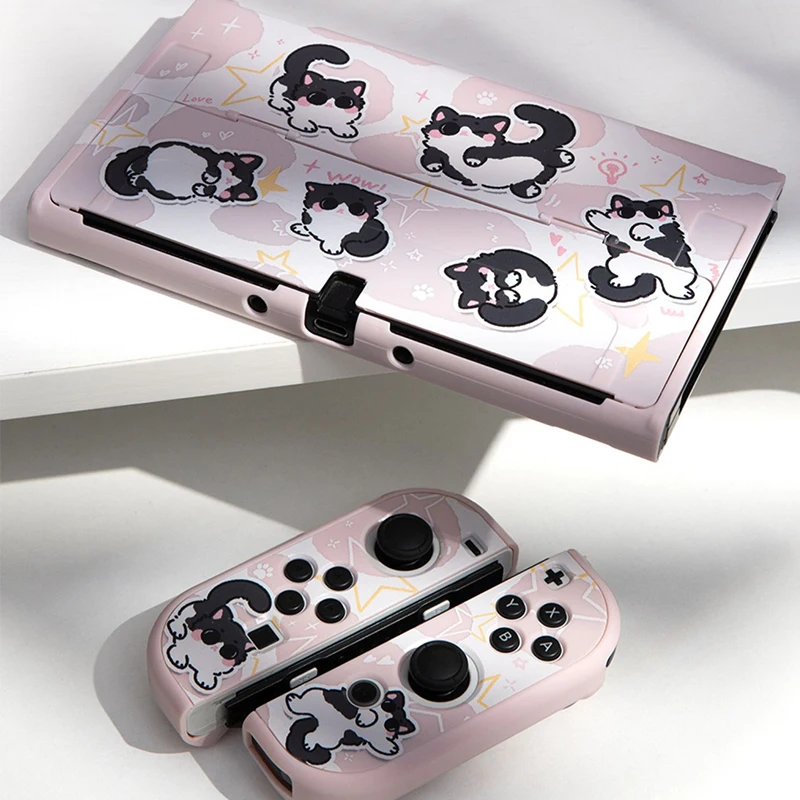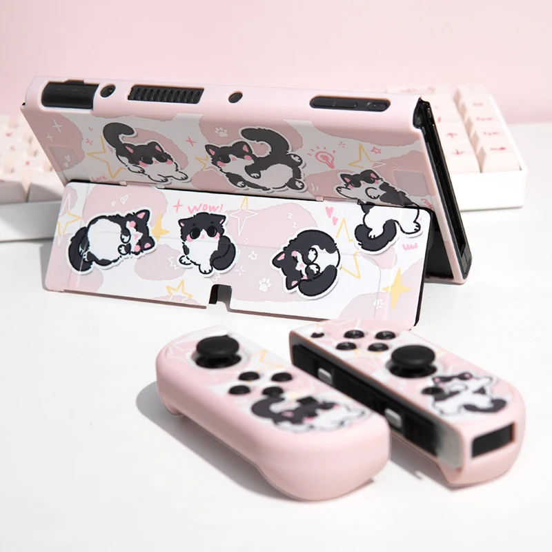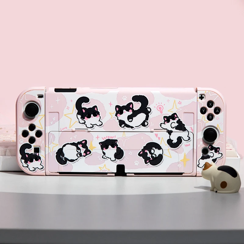 닌텐도 스위치 OLED 케이스 용 Kawaii 고양이 NS 쉘 하드 PC 커버 Nintendo NS 스위치 액세서리 용 분할 Joy-con 보호 케이스