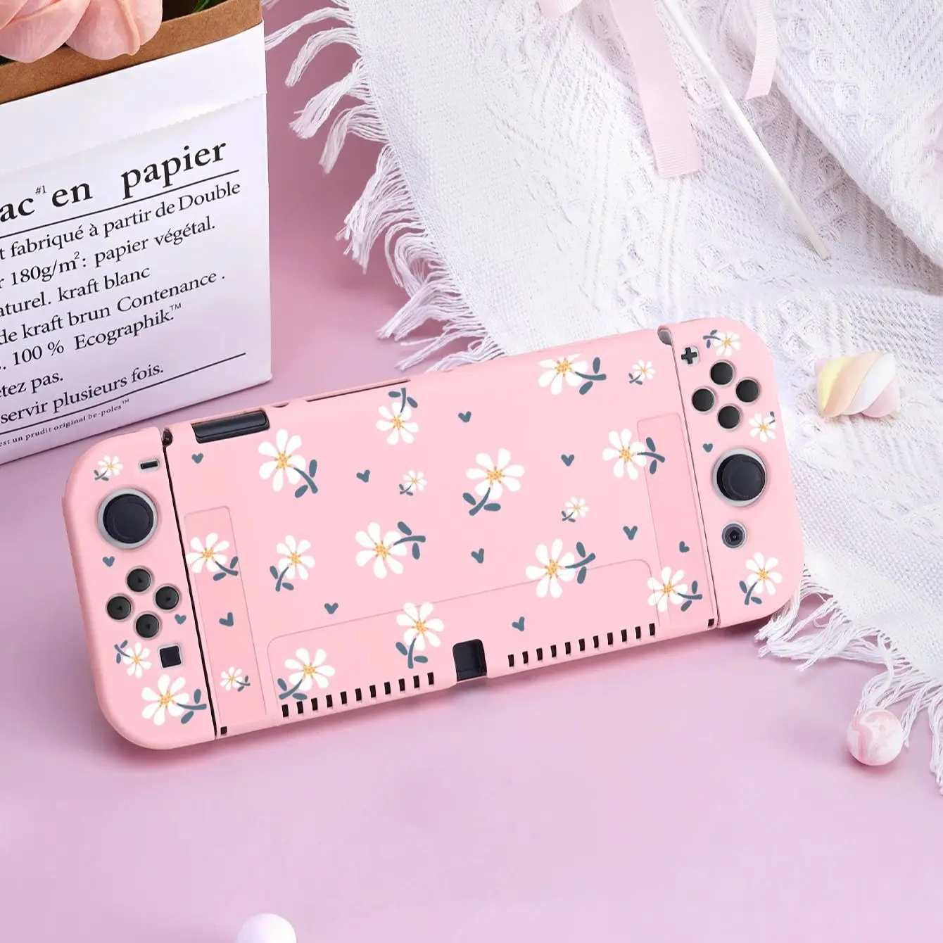 닌텐도 스위치 OLED용 꽃 스위치 보호대 케이스 NS 게임 액세서리 NS 조이콘용 휴대용 분리형 쉘 스위치 커
