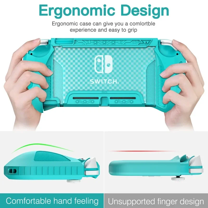 인체공학적으로 설계된 Nintendo Switch Lite TPU 보호 케이스, 강화 필름 및 6 개의 키캡으로 편안한 터치