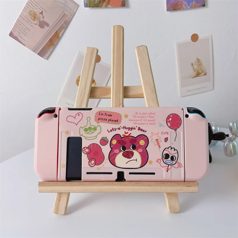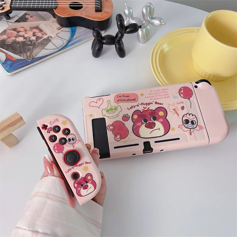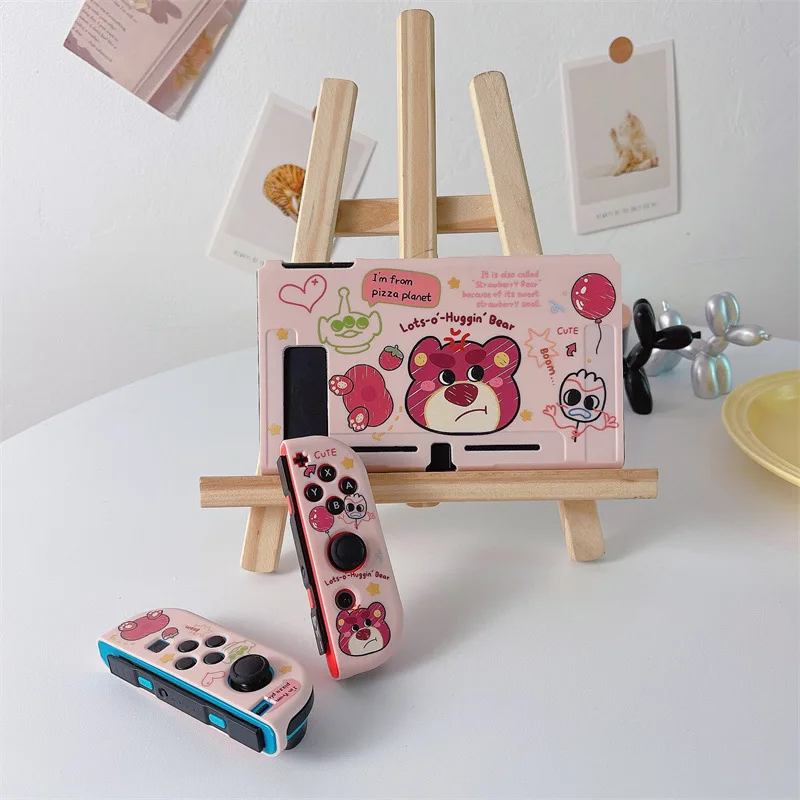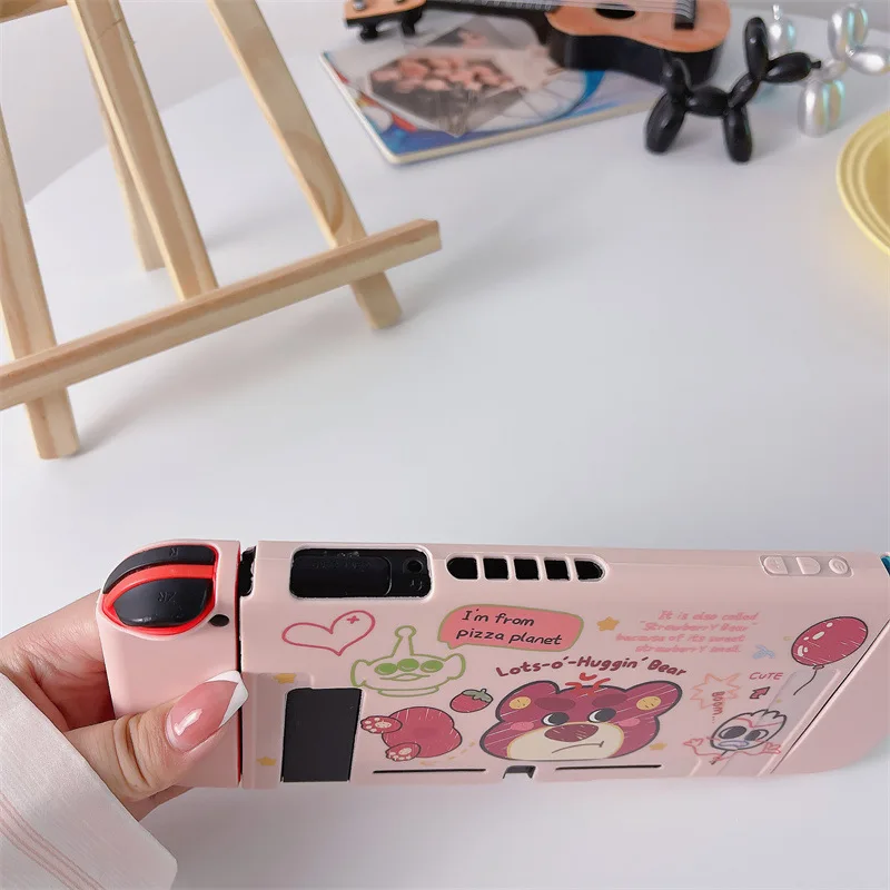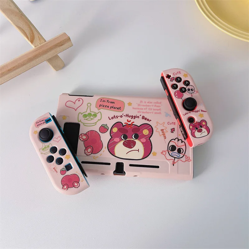 Disney Strawberry Bear for Nintendo OLED Silicone Soft Painted Drop Case Splitable NS Handheld Game Console Case