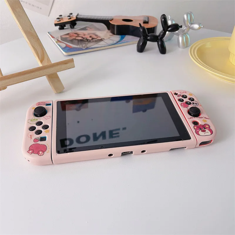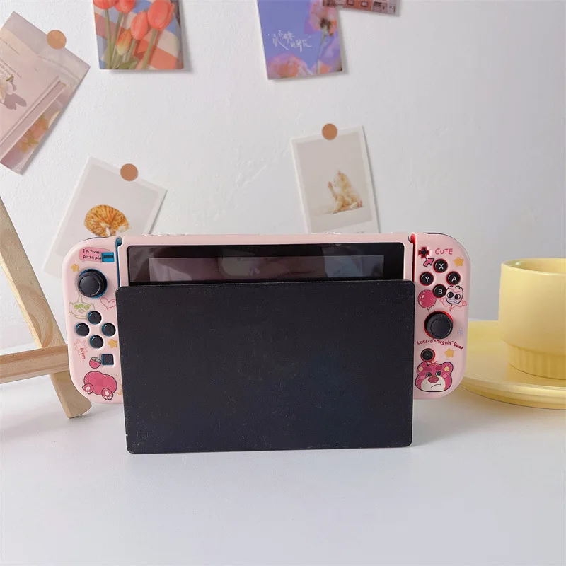 딸기 곰 닌텐도 OLED 실리콘 소프트 페인트 드롭 케이스 분할 가능한 NS 핸드헬드 게임 콘솔 케이스