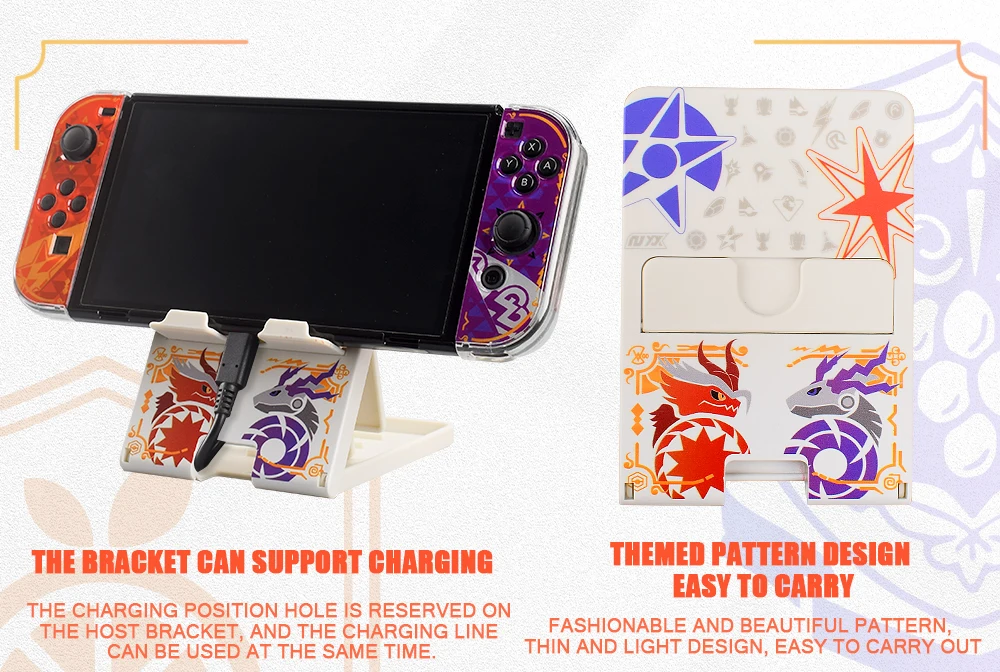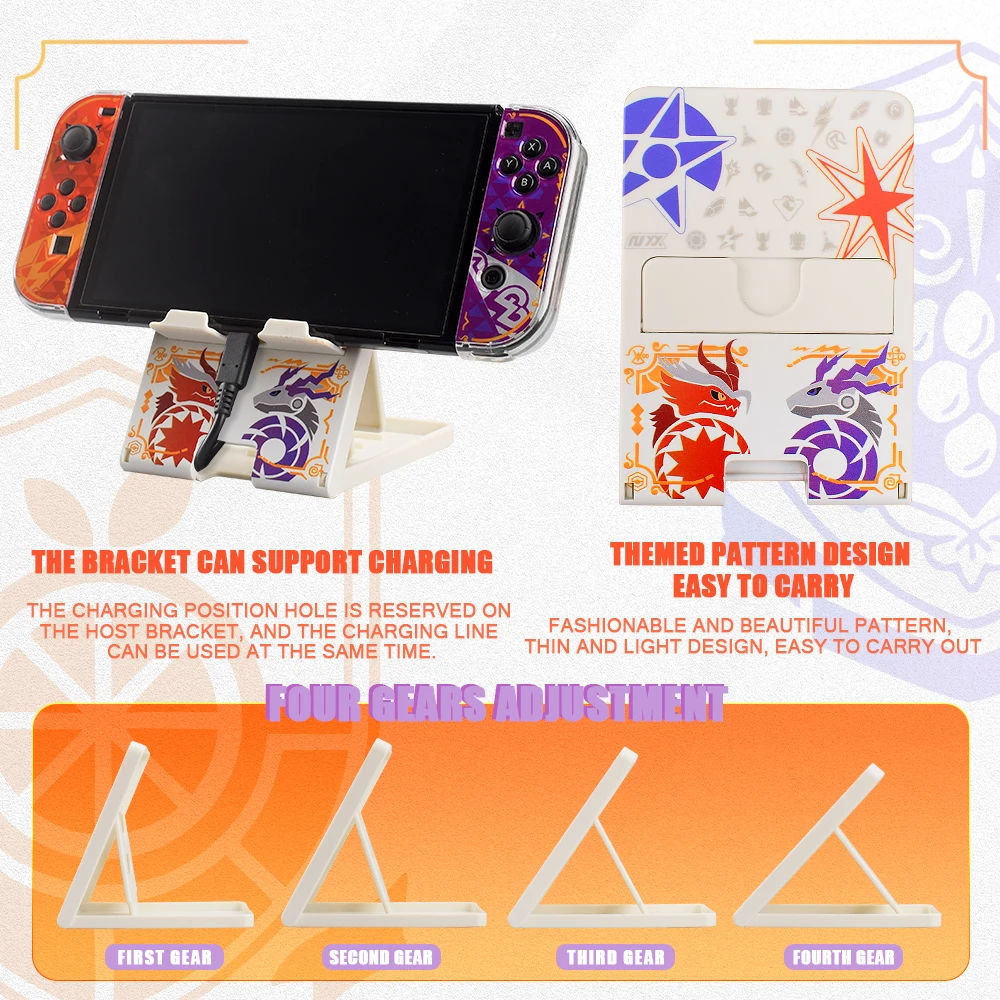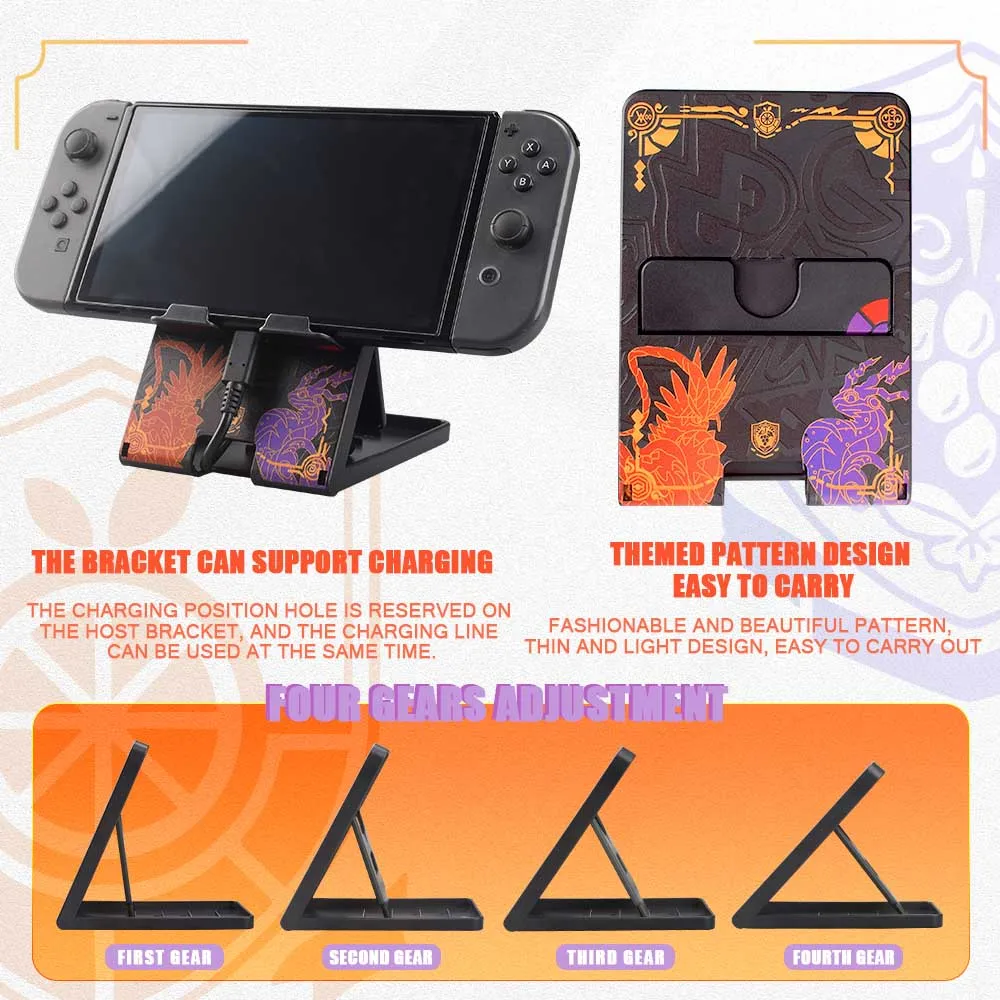 4 In 1 NS 애니메이션 스칼렛 및 바이올렛 피규어 콘솔 스탠드 홀더 Nintendo Switch Oled 용 조정 가능한 무대 브래킷 섀시베이스