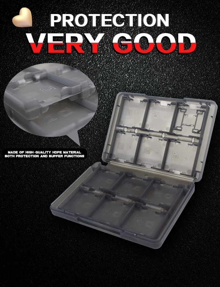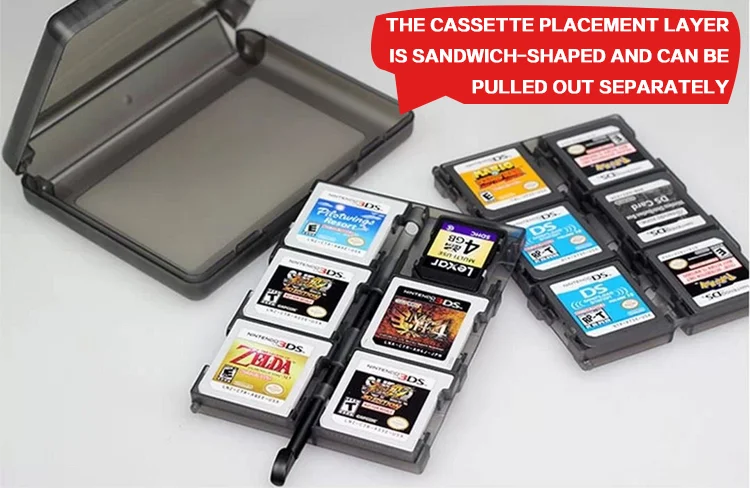 최대 24 개의 Nintendo 게임 카드를 쉽게 저장하고 구성 할 수 있습니다. 2 개의 SD 카드 슬롯이 포함되어 있습니다. 복잡하지 않은 편리함을 제공하는 케이스의 편리한 카트리지 홀더에는 게임 카드가 깔끔하게 들어 있으며 필요에 따라 쉽게 넣을 수 있습니다.